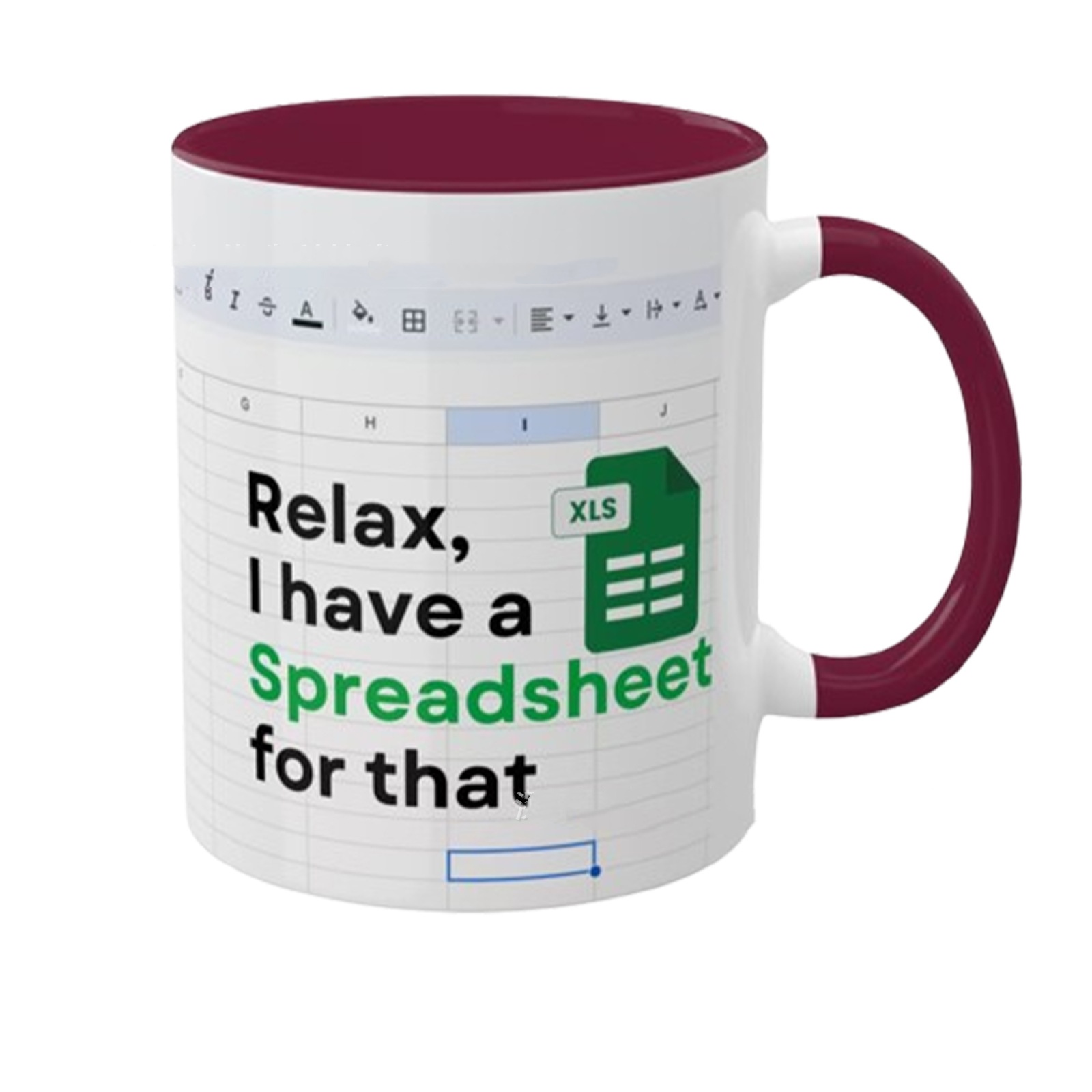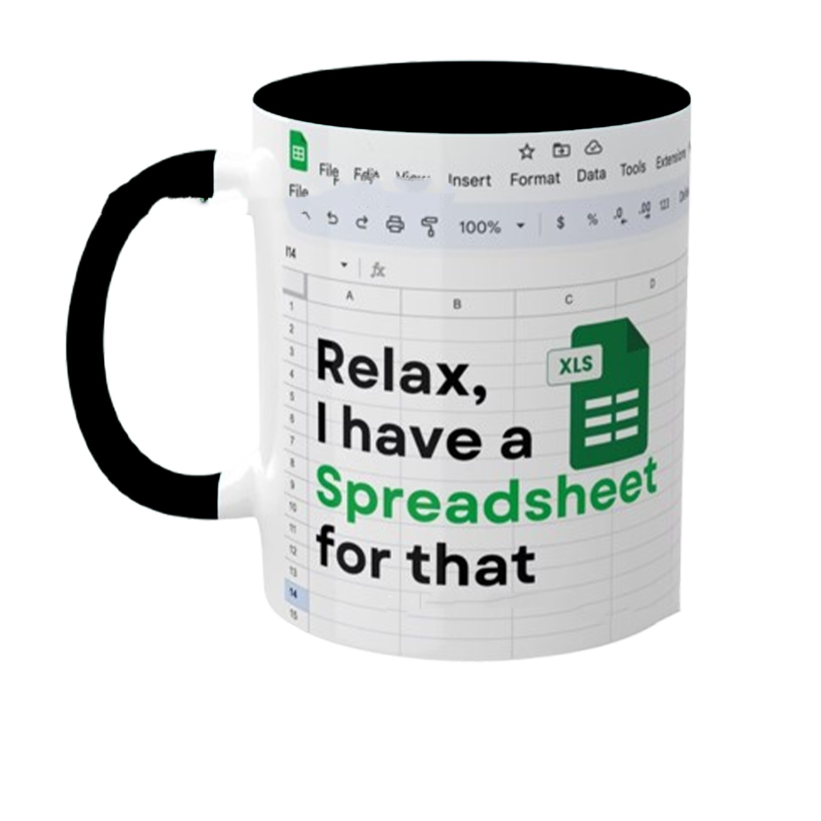 Enjoy your coffee with the Relax Spreadsheet Ceramic Mug, featuring a sturdy design and comfortable grip for everyday use.