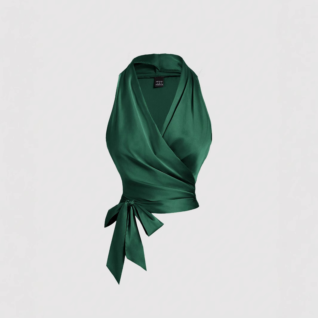 This retro-inspired apricot sleeveless tank top features a distinctive knot back design with crossed straps, offering both style and comfort. Crafted from lightweight, breathable fabric, it ensures ease of wear during warm weather. The sleeveless cut and soft material provide a flattering fit, making it ideal for casual outings or layering under jackets. Its unique back detail adds a fashionable edge to a classic silhouette.