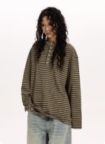 Stylish retro striped long-sleeve shirt featuring a relaxed fit for comfort and classic appeal.