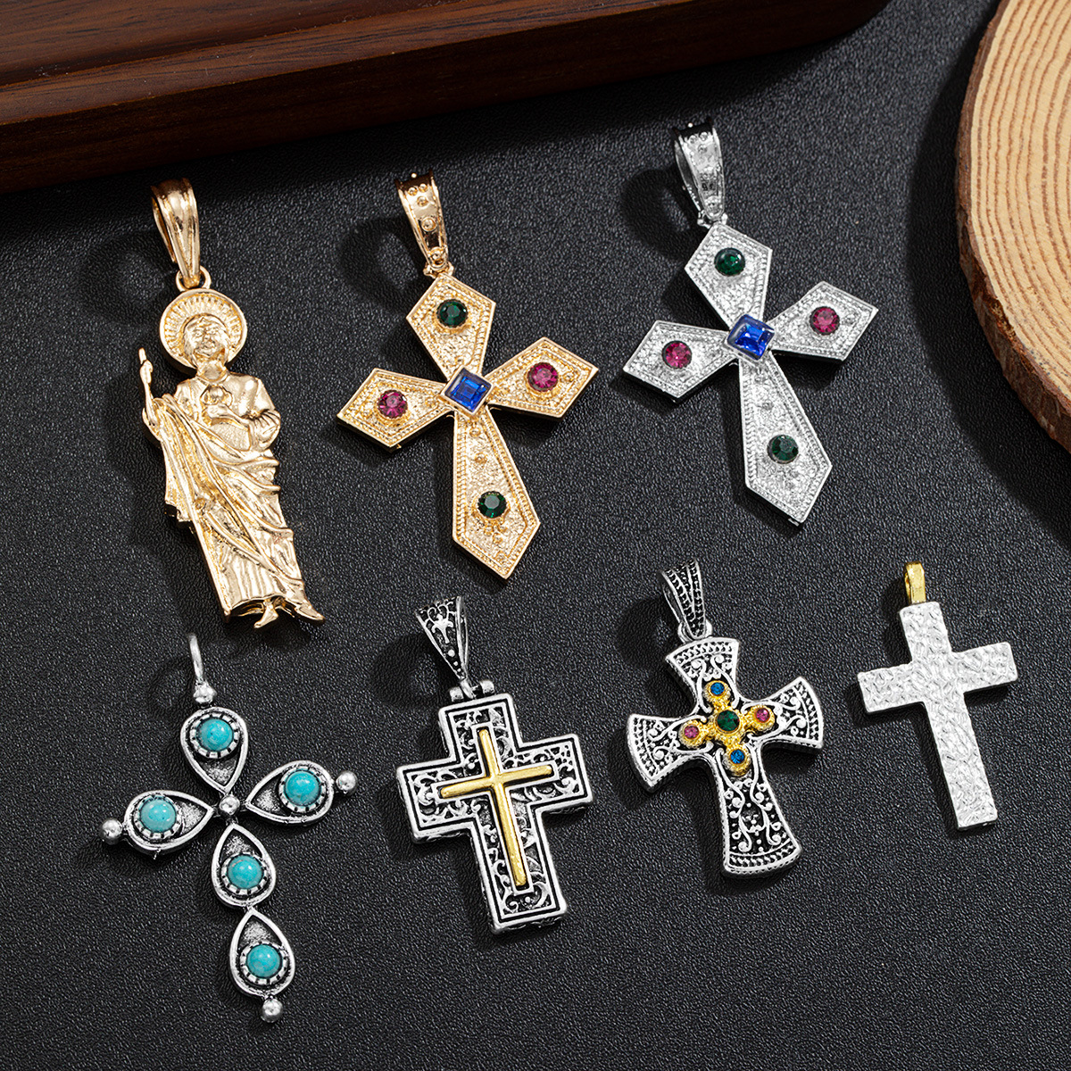 Elegant retro cross portrait pendant necklace featuring a detailed design for a timeless accessory.