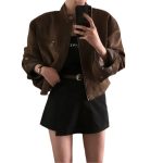 Be the first to review “Retro Graceful Stand Collar Zipper Pocket Loose Versatile Short Jacket” Cancel reply