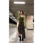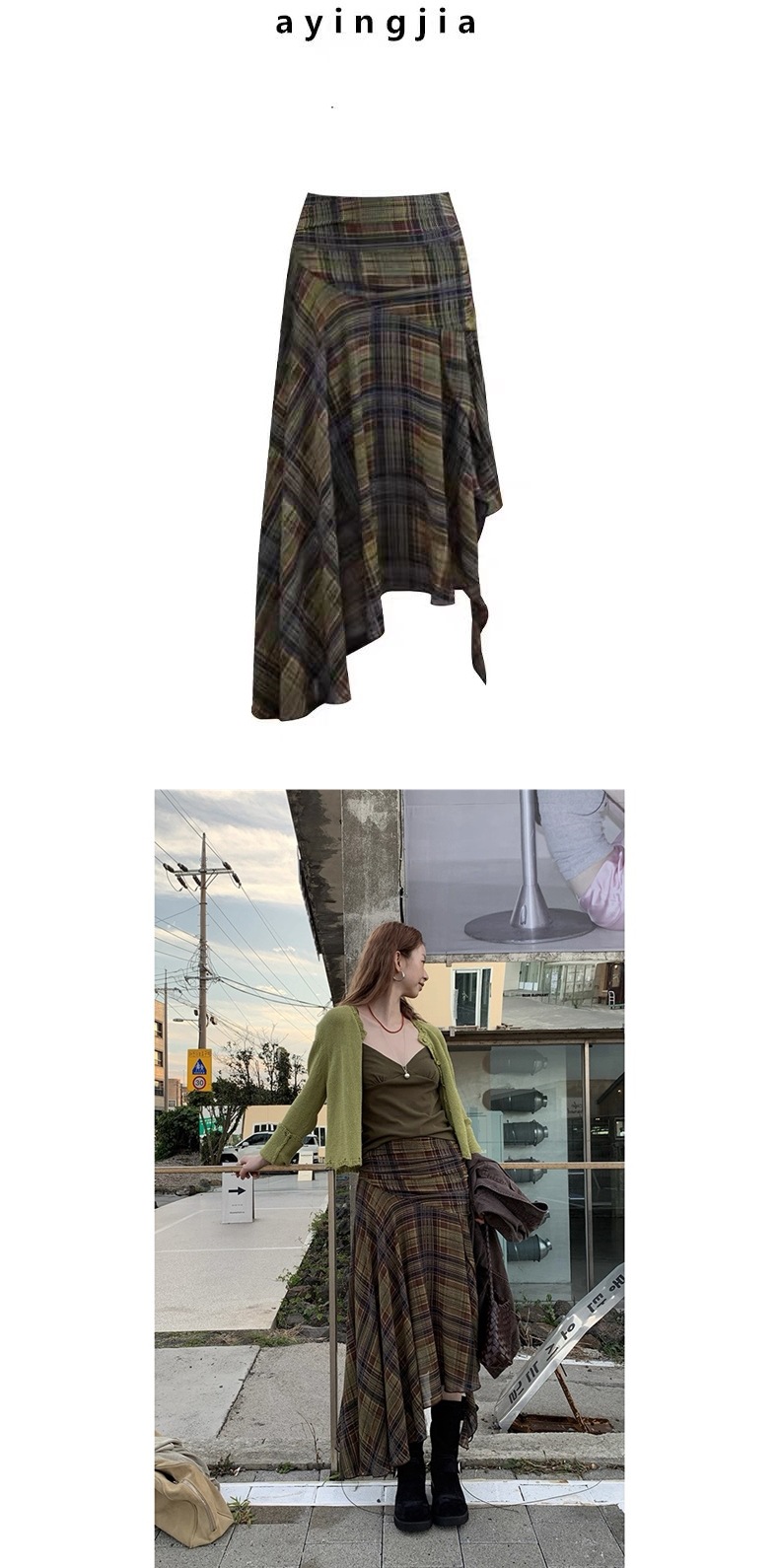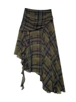Stylish retro irregular plaid skirt featuring unique design elements, perfect for autumn fashion ensembles.