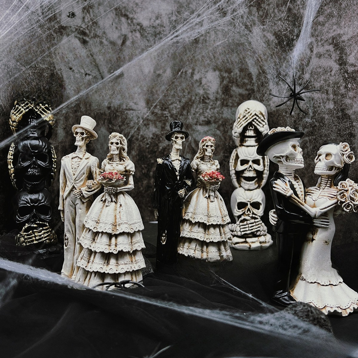 This retro-style Halloween skeleton couple ornament is crafted from high-quality resin, designed to add a vintage charm to your seasonal decorations. Featuring a detailed skeleton pair, the piece captures classic Halloween aesthetics with a unique, nostalgic appeal. Its durable resin construction ensures long-lasting use, ideal for indoor display or as part of a seasonal centerpiece. The ornament’s compact size makes it easy to place on tables, shelves, or mantels, complementing various Halloween themes. This accessory enhances the festive atmosphere with its timeless design and solid craftsmanship.