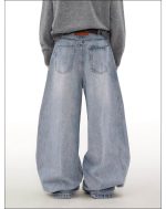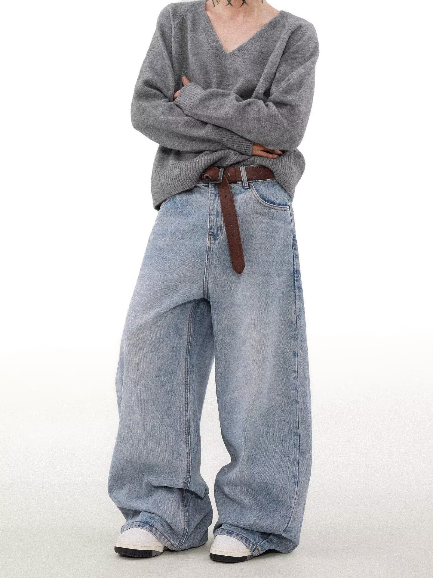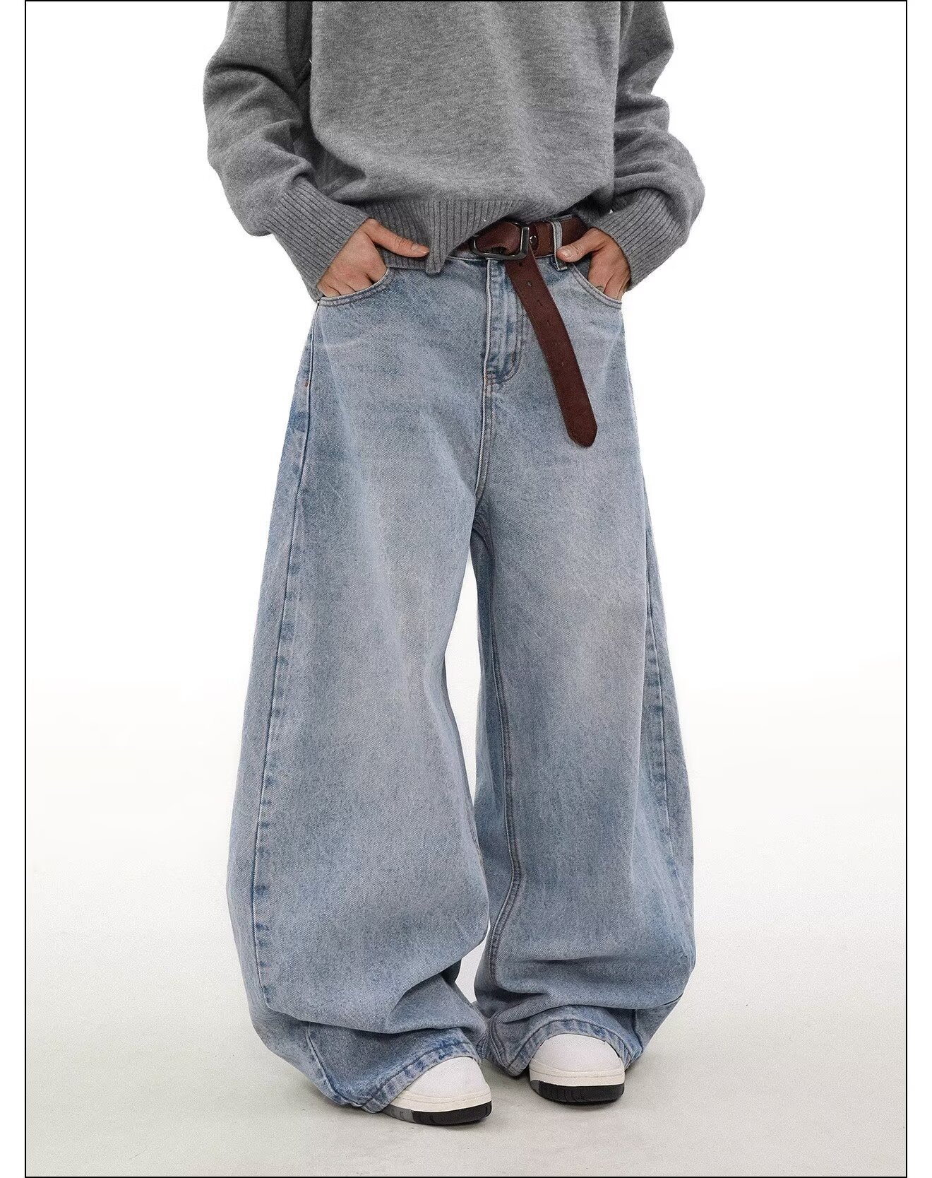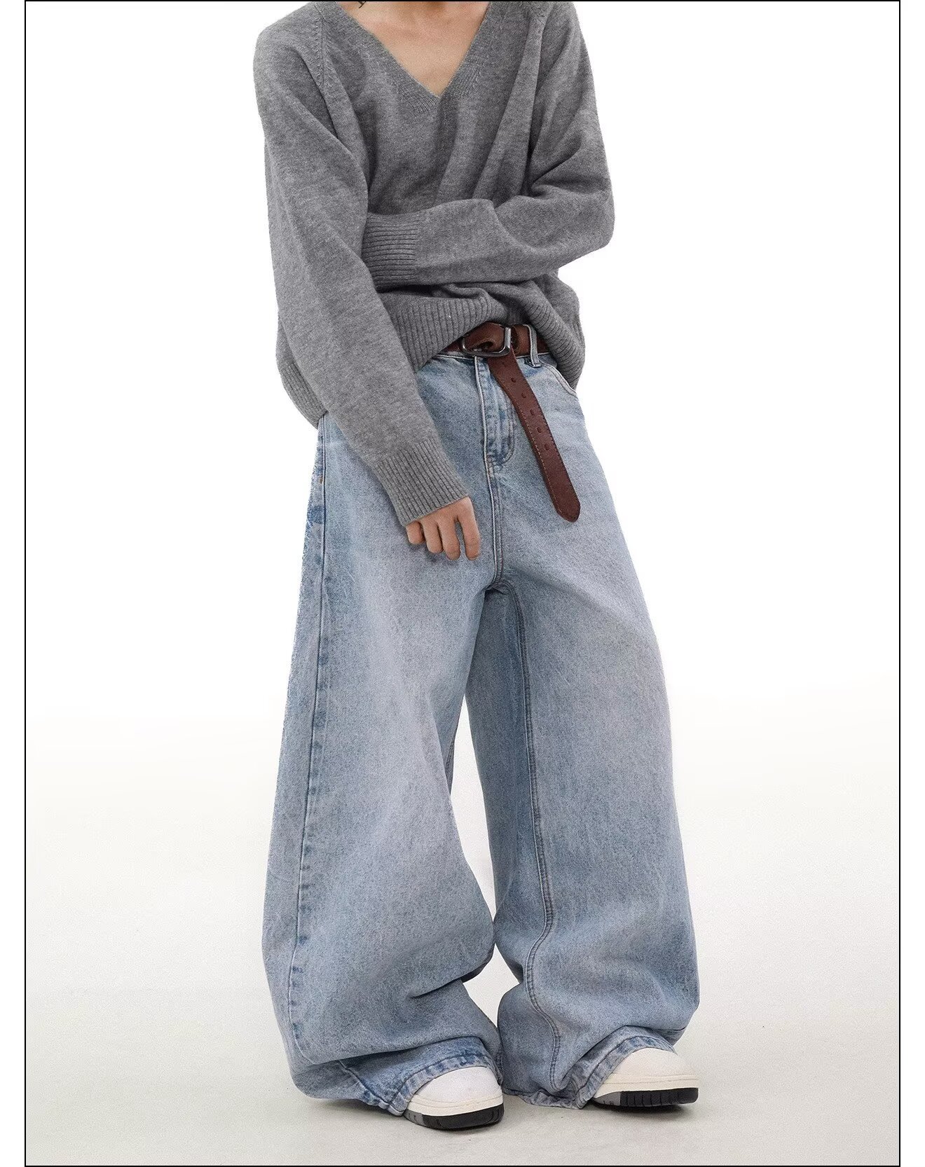 Classic retro washed distressed straight jeans offering comfort and timeless style, crafted for everyday wear.