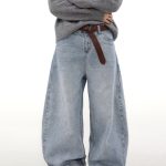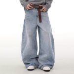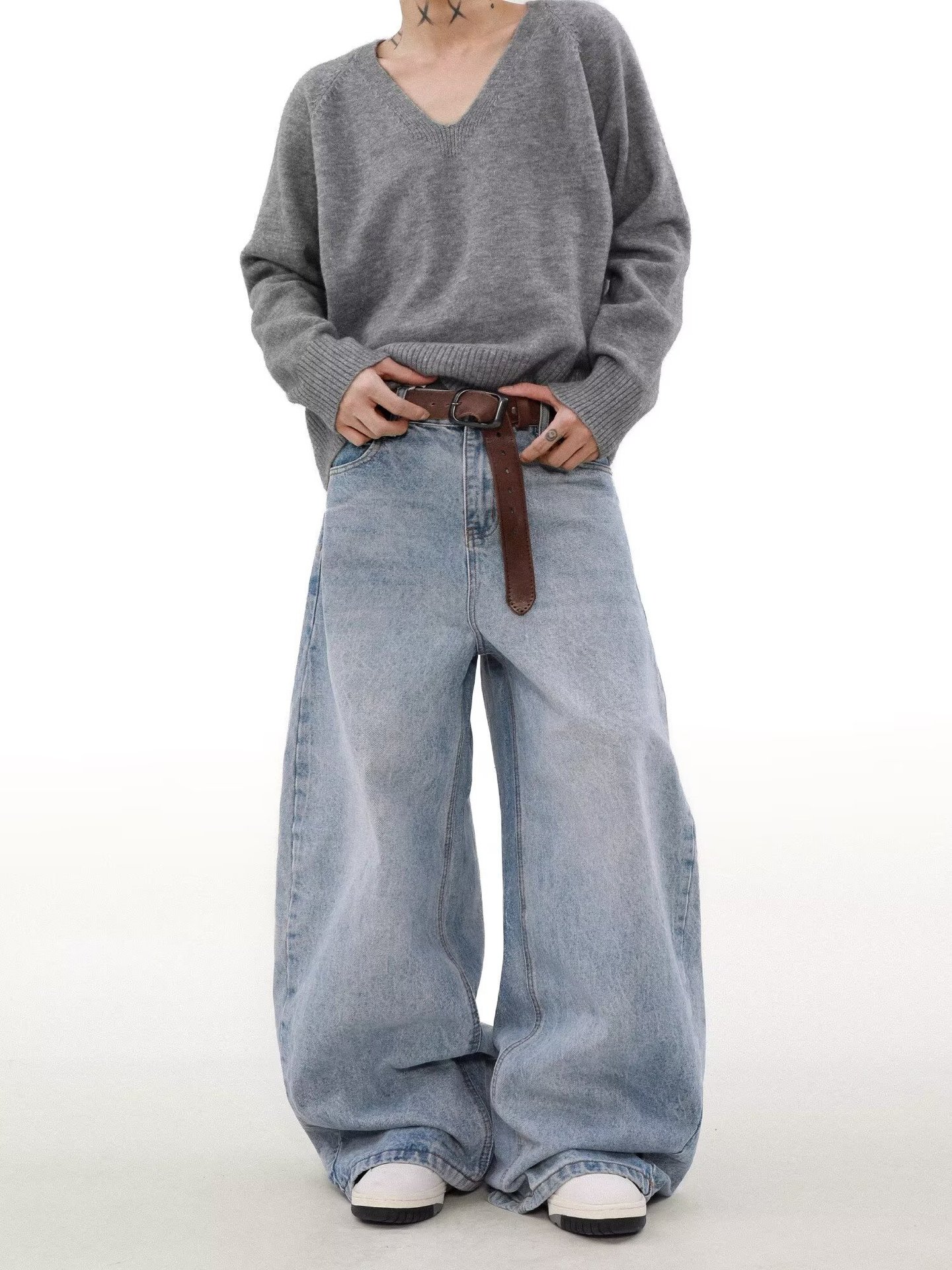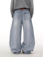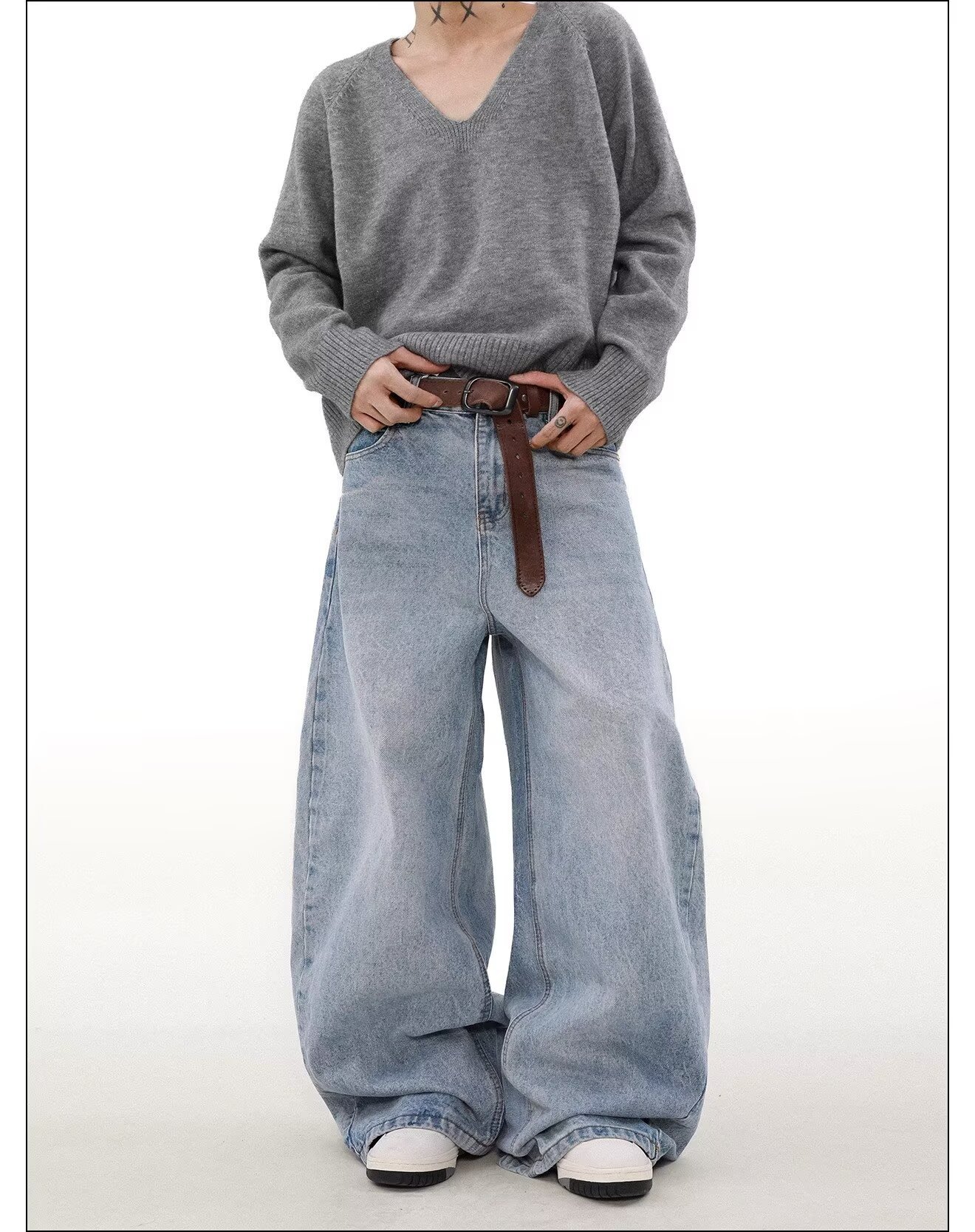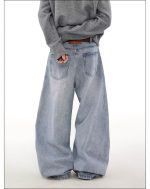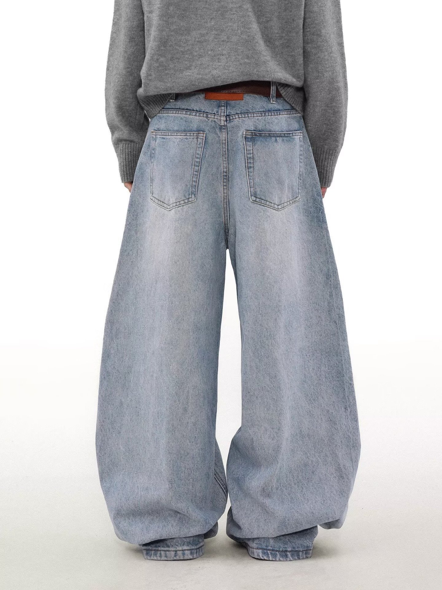 Classic retro washed distressed straight jeans offering comfort and timeless style, crafted for everyday wear.