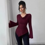 This long-sleeved top features a slim fit silhouette crafted from a soft ribbed knit fabric. Designed with an off-the-shoulder neckline, it offers a stylish and modern look suitable for layering or wearing alone. The ribbing detail enhances the garment’s texture, providing comfortable stretch and a flattering fit that contours the body while maintaining ease of movement.