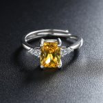 Stylish women’s rectangular yellow diamond zircon opening ring with adjustable design, combining elegance and versatility for everyday wear.