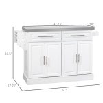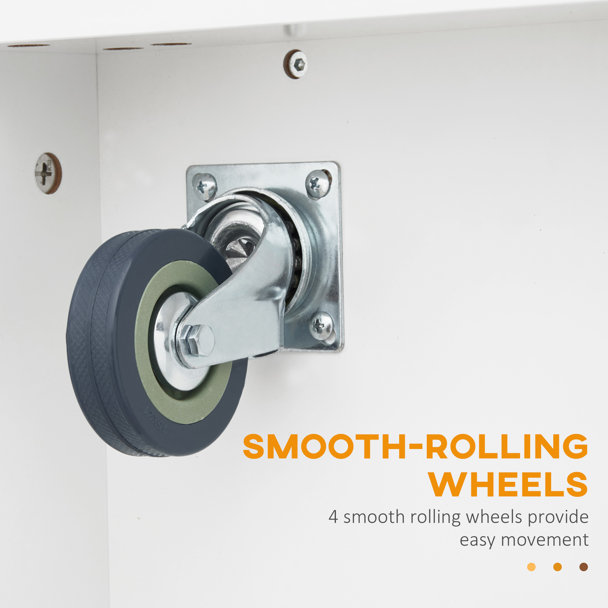 This rolling kitchen island cart is designed to enhance kitchen functionality by offering a mobile workspace and additional storage. Equipped with durable wheels, it ensures smooth movement across various floor surfaces, facilitating easy relocation as needed. The cart provides ample storage options, including shelves and compartments, to organize utensils, cookware, and ingredients efficiently. Its robust construction supports daily kitchen tasks, making it a versatile addition to any culinary space.