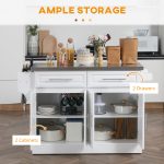 Mobile kitchen island cart featuring sturdy wheels, ample storage, and multipurpose workspace for efficient kitchen organization.