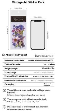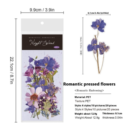 The Romantic Embossed Flower Series features intricately embossed floral patterns designed to add an elegant touch to various surfaces. Each piece comes with a strong adhesive backing, ensuring simple and secure installation without the need for additional tools or adhesives. Crafted for durability, this decorative series is ideal for enhancing home décor, craft projects, or personalized gifts with a refined floral motif. The adhesive surface offers versatility and convenience, making it suitable for use on walls, furniture, or scrapbooking materials.