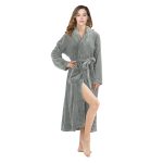 RONGTAI women’s fleece bathrobe offers plush warmth and comfort with a long design, ideal for nightwear and relaxation.