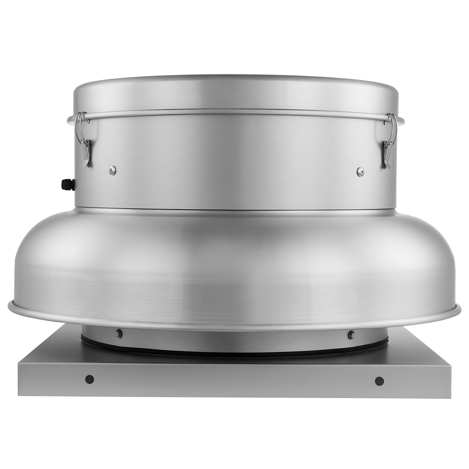 This roof exhaust fan features a robust high-power motor designed to provide efficient ventilation with adjustable speed control, allowing airflow rates of 4000 or 5000 CFM. The fan base measures 24.8 inches and is constructed from heavy-duty aluminum alloy to ensure durability and resistance to corrosion. Its compact design makes it suitable for installation in various spaces such as attics, garages, kitchens, and bathrooms. Finished in a sleek silver tone, the fan combines functionality with a professional, modern appearance. This ventilation solution is engineered to improve air circulation, reduce moisture buildup, and maintain a comfortable environment in residential or commercial settings.