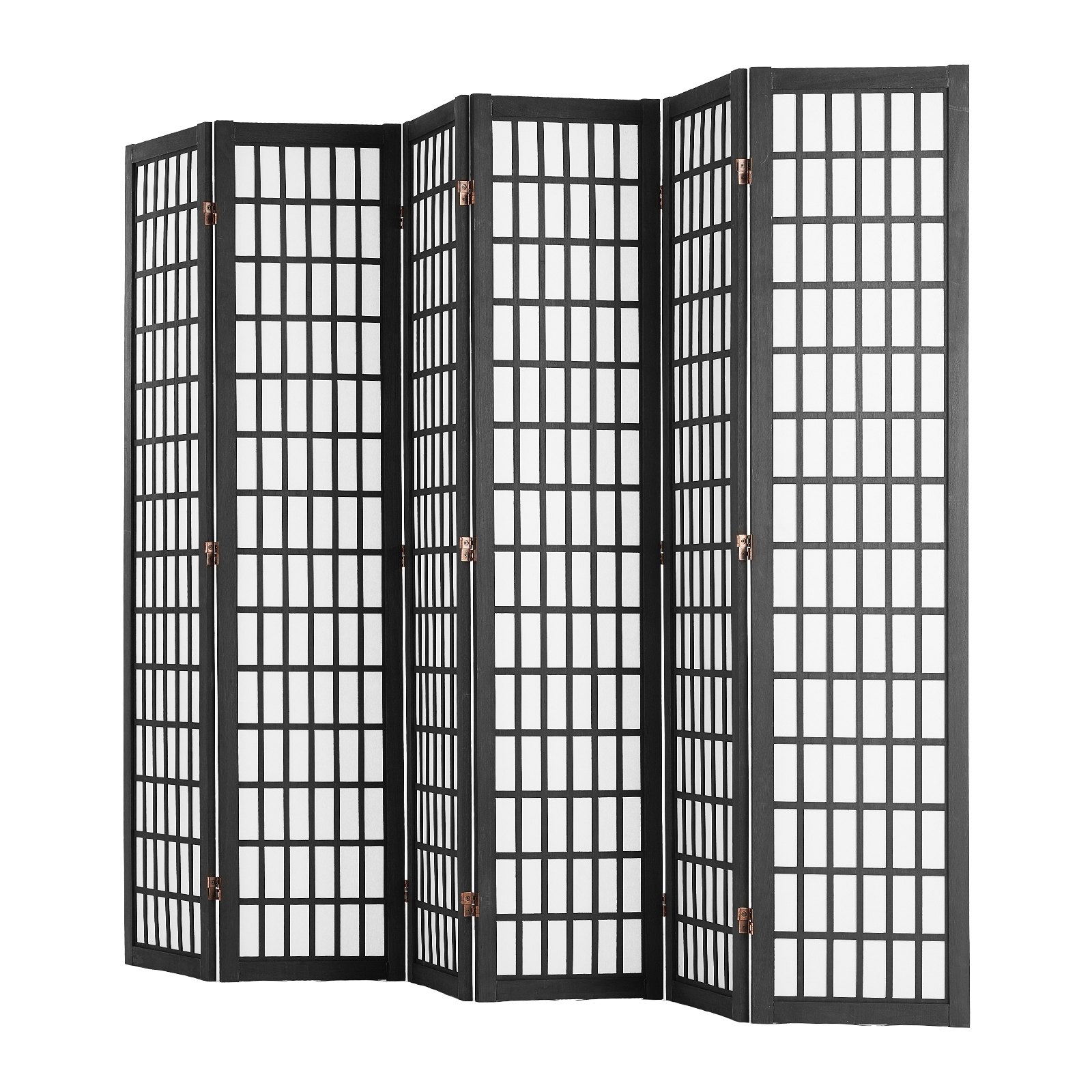 This 6-panel Japanese folding room divider offers a sleek black finish, combining functionality with elegant design. Crafted for indoor use, it serves as an effective privacy screen and stylish partition, enabling versatile room separation in various settings such as homes, offices, bedrooms, and restaurants. Its foldable construction ensures easy portability and simple storage, making it a practical solution for dynamic spaces requiring flexible layouts or decorative accents.