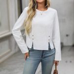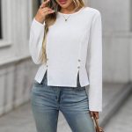 Be the first to review “Round Neck Button Decoration Slit Simple Versatile Top” Cancel reply