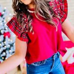 Be the first to review “Round Neck Pullover Printed Checks Ruffle Sleeve Loose Top For Women” Cancel reply
