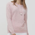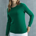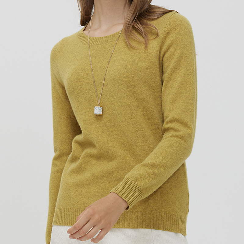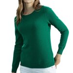 Premium pure wool women’s long sleeve pullover sweater with a round neck and loose fit for comfortable everyday wear.