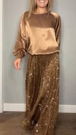 Be the first to review “Round Neck Satin Top Sequin Dress Suit Two-piece Set” Cancel reply