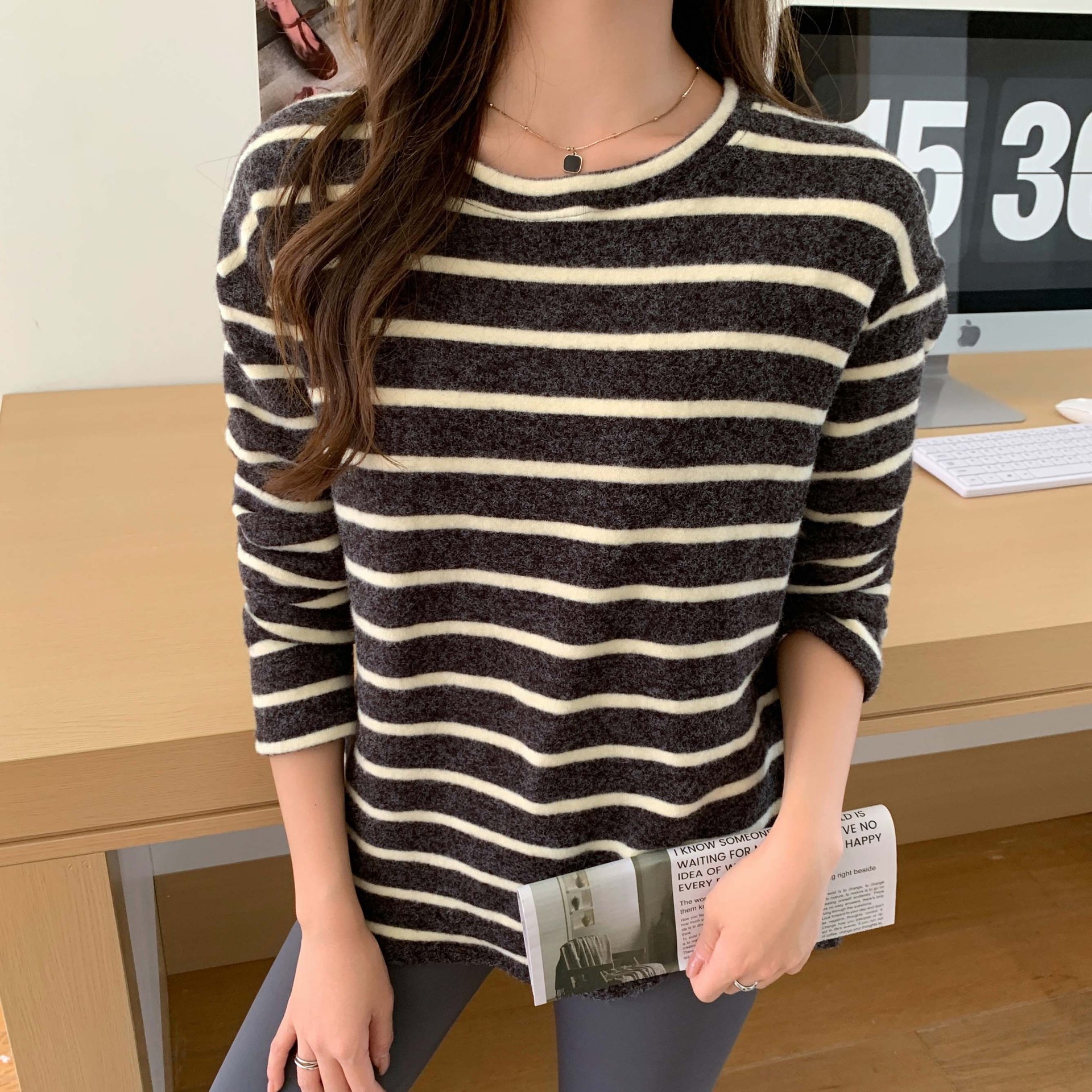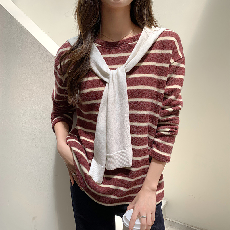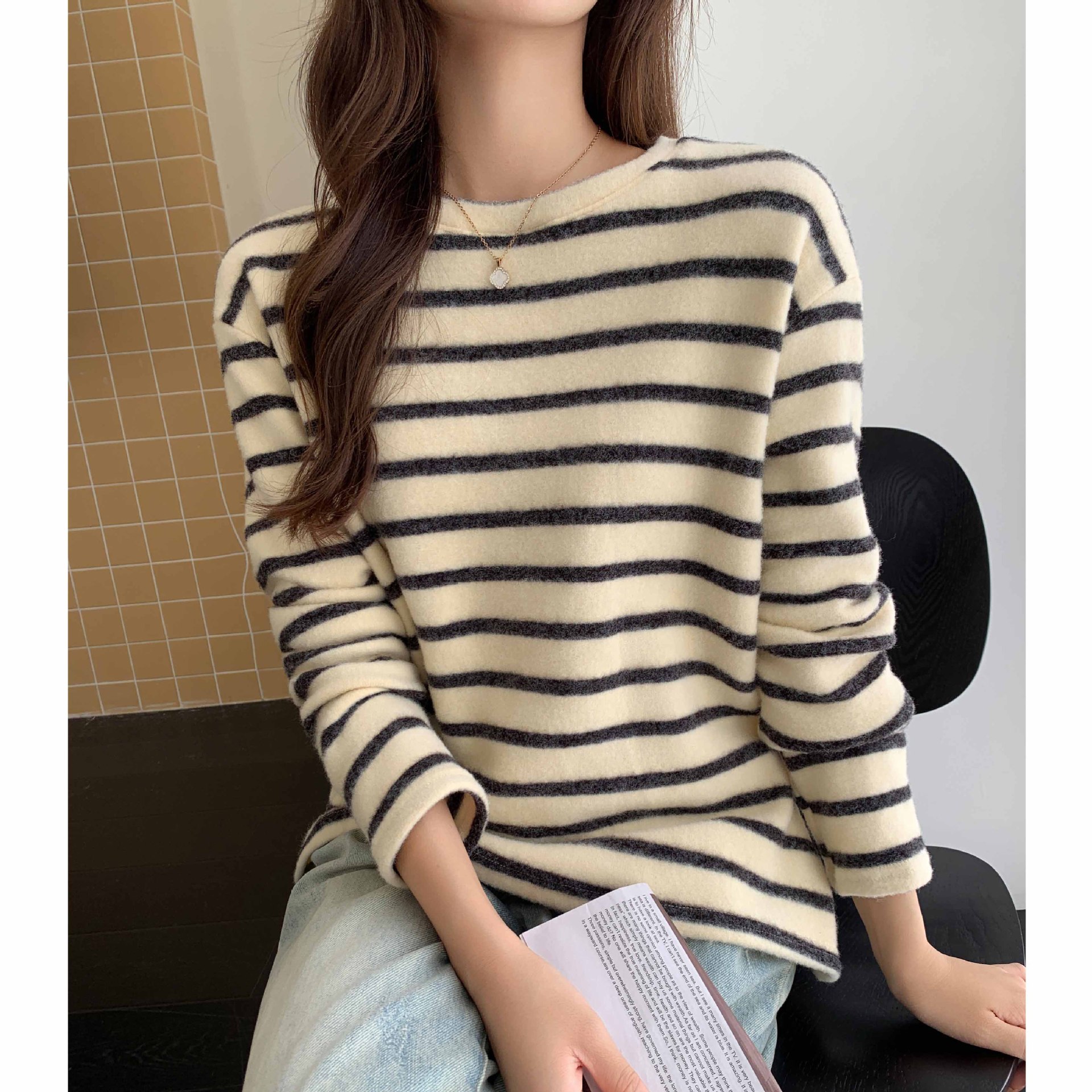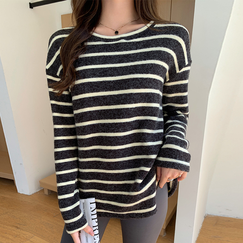 Be the first to review “Round Neck Striped Brushed Long Sleeve T-shirt For Women Autumn And Winter” Cancel reply