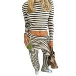 Be the first to review “Round Neck Striped Long Sleeve Straight-leg Trousers Suit Women” Cancel reply