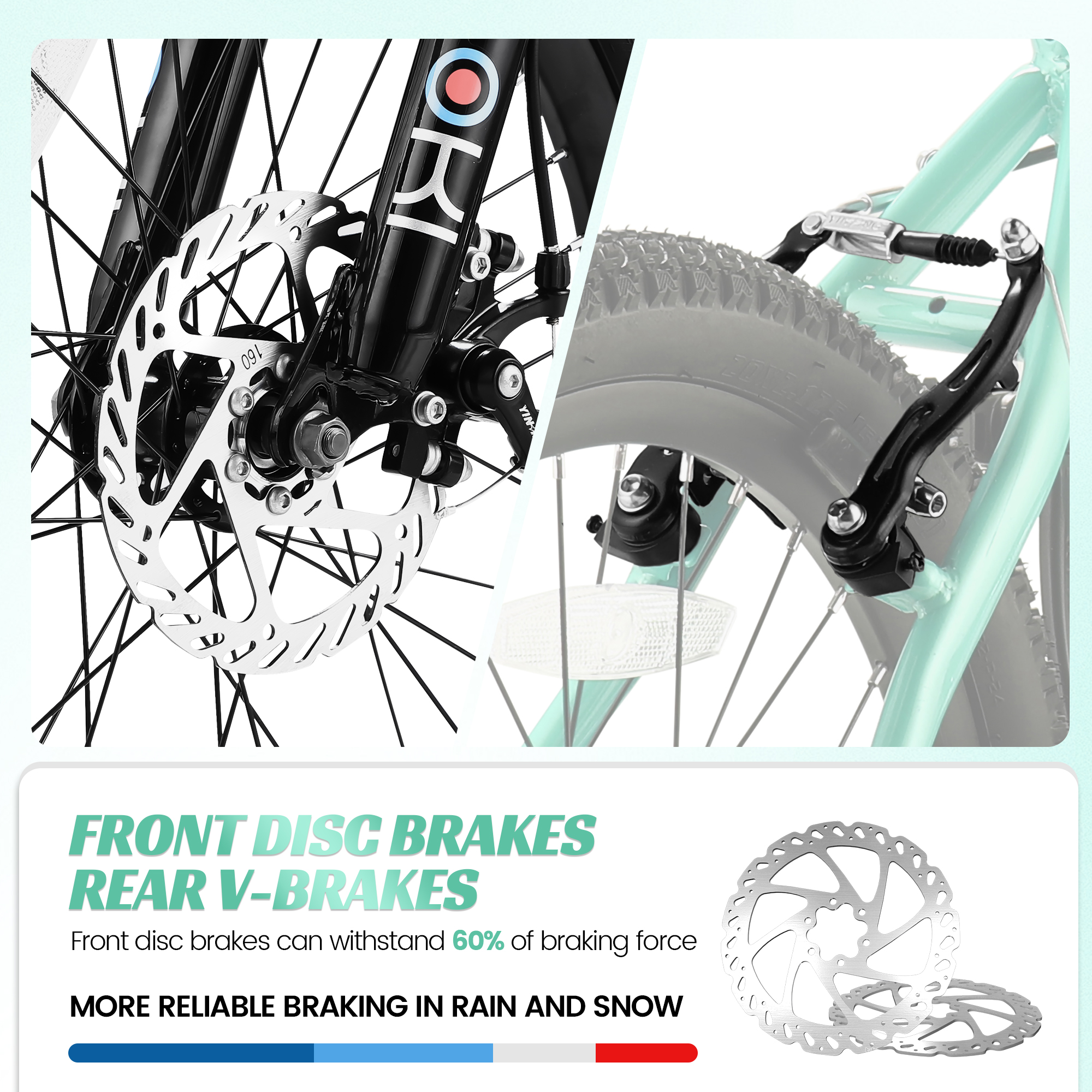 S20101 20 Inch Kids’ Bike, Boys Girls Mountain Bike Ages 6-12, 7 Speed Teenager Children Kids’ Bicycles, Front Suspension Disc Brake Rear V-Brake, High Steel Frame