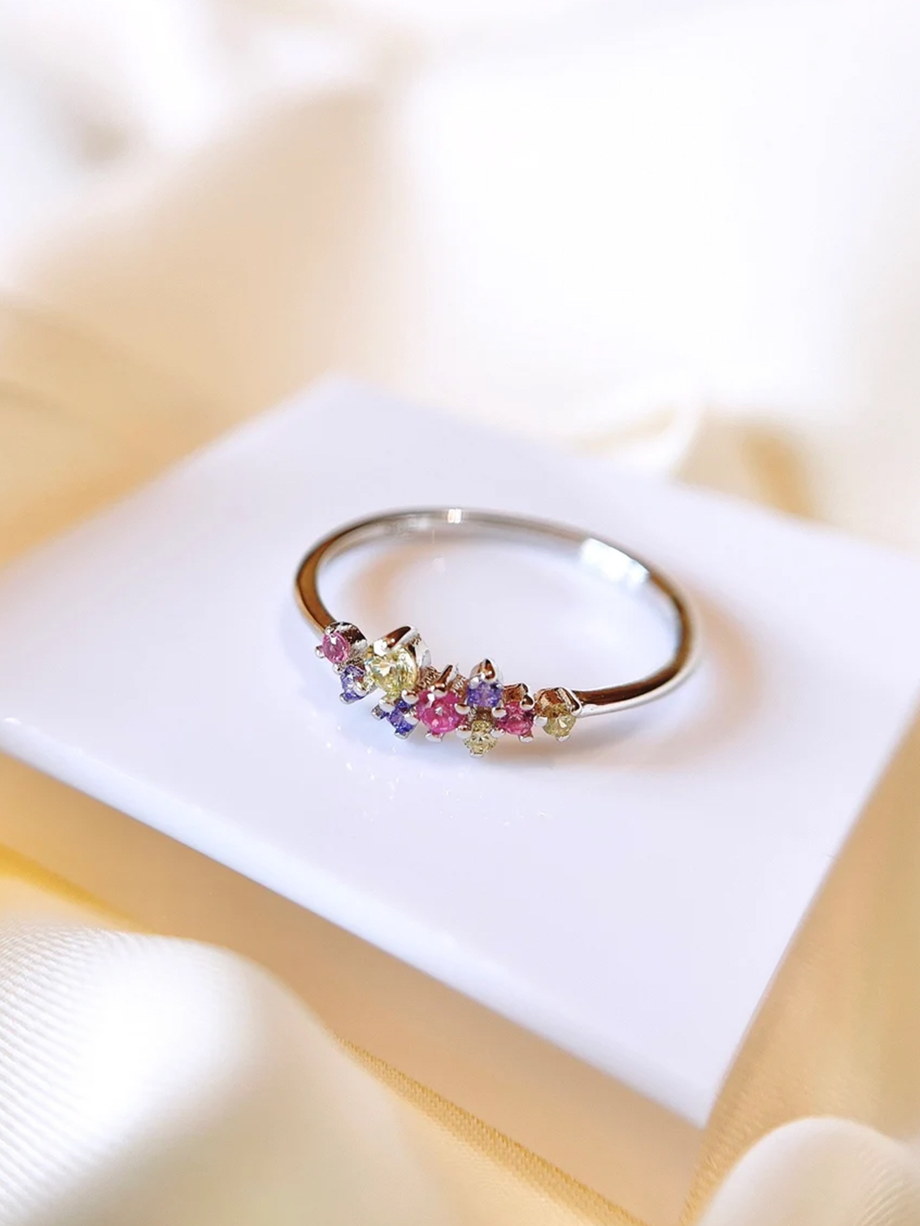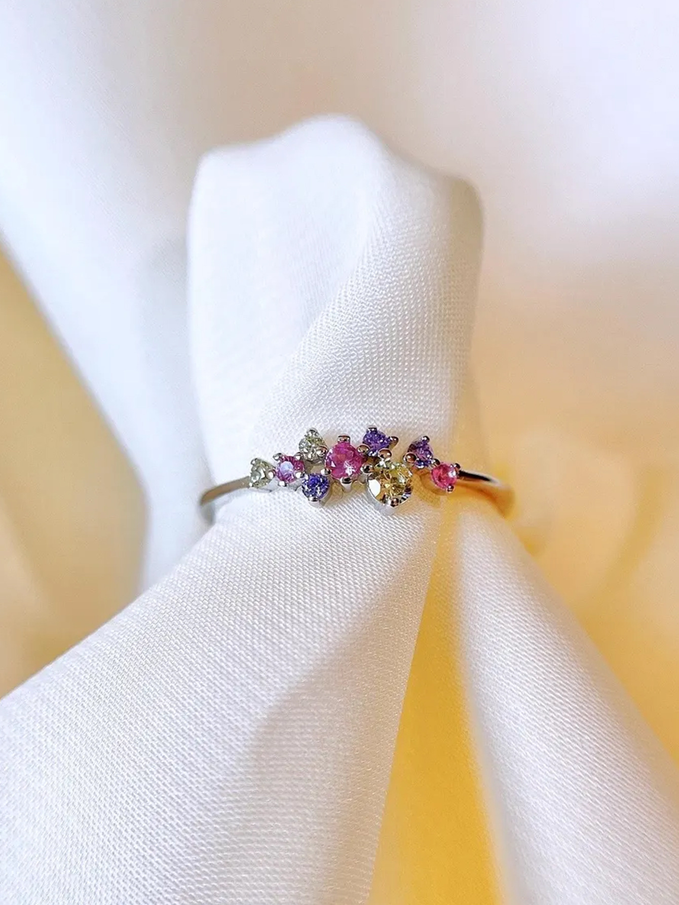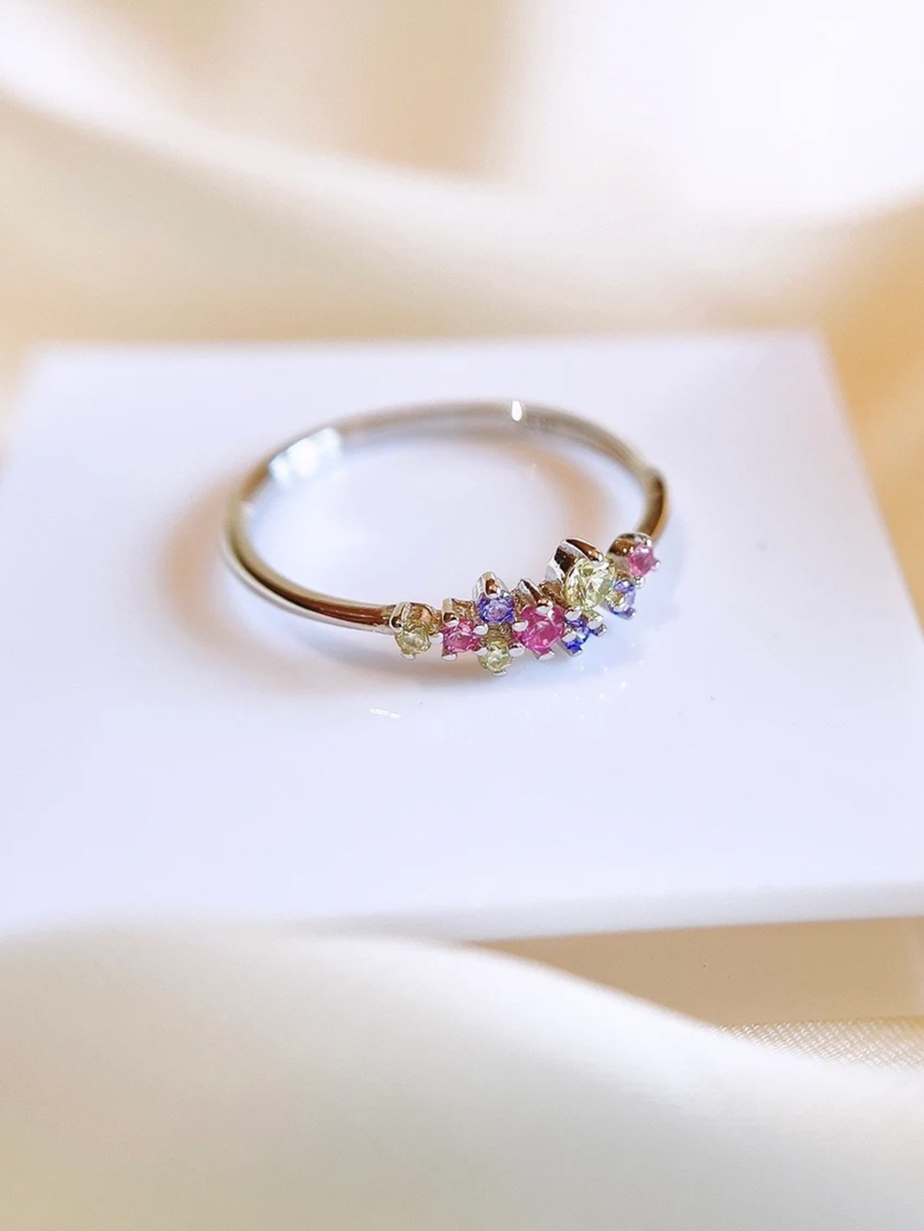Elegant S925 sterling silver ring featuring vibrant colorful crystals, ideal for adding a refined touch to any outfit.
