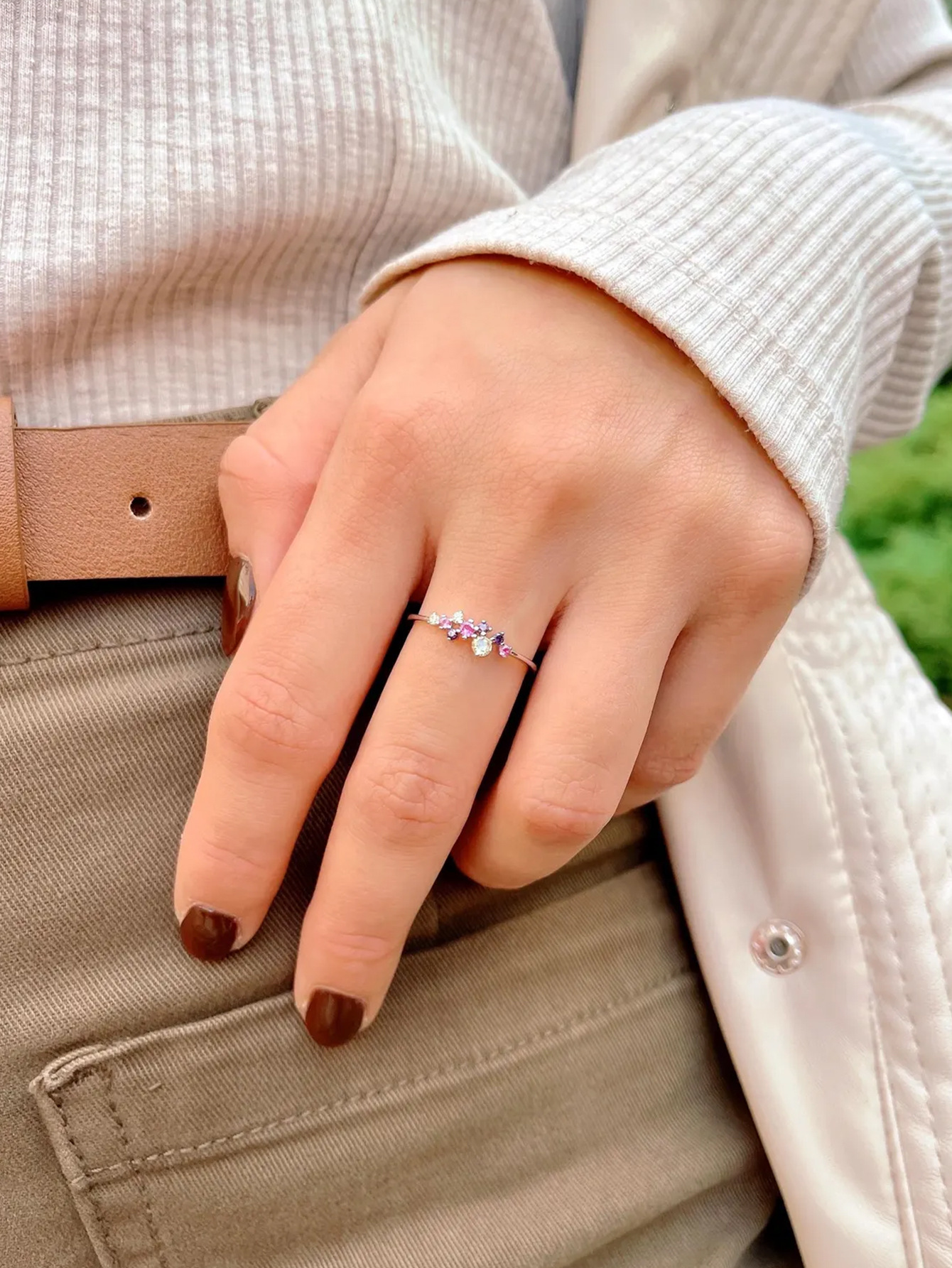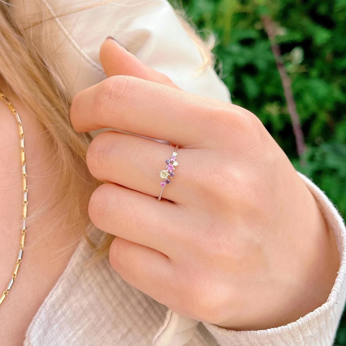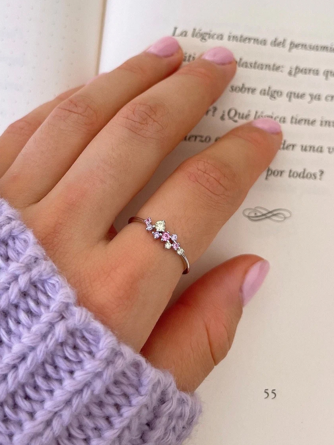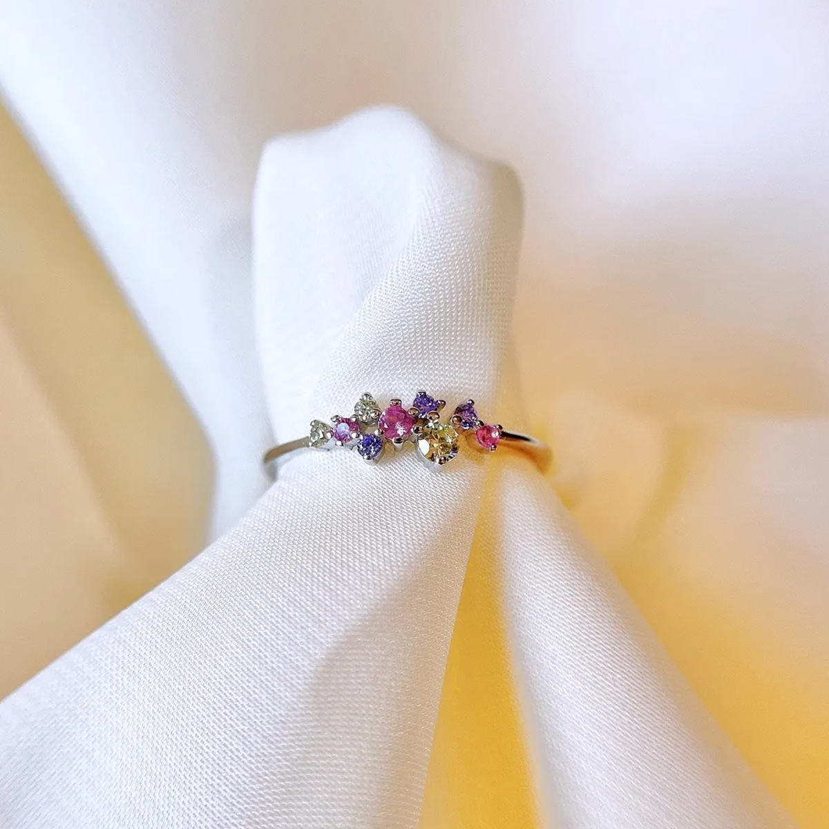Elegant S925 sterling silver ring featuring vibrant colorful crystals, ideal for adding a refined touch to any outfit.