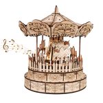 Handcrafted 3D wooden carousel puzzle music box kit, perfect for holidays, birthdays, and Christmas gifts.