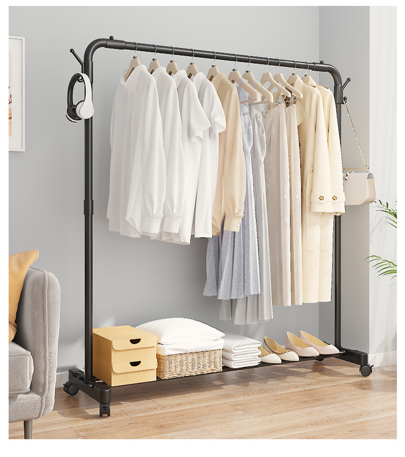 Durable and versatile floor-standing rack for drying, hanging, and storing clothes efficiently. Ideal for household use.