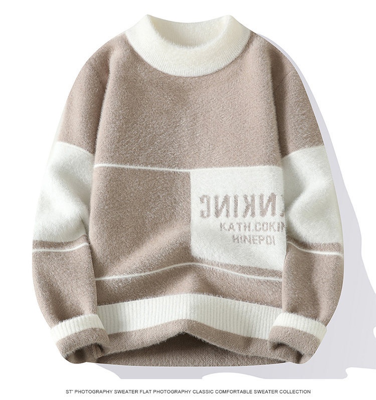 Elegant semi-high neck golden mink sweater crafted with premium materials for superior comfort and style.