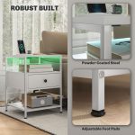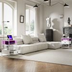 This set includes two side tables designed for contemporary interiors, each equipped with integrated USB charging stations for convenient device power access. The tables also feature subtle LED lights that provide ambient illumination, enhancing the room’s atmosphere. Crafted with durable materials, these tables offer both functionality and style, making them suitable for living rooms, bedrooms, or office settings. Their compact size ensures easy placement alongside sofas or beds without occupying excessive space.