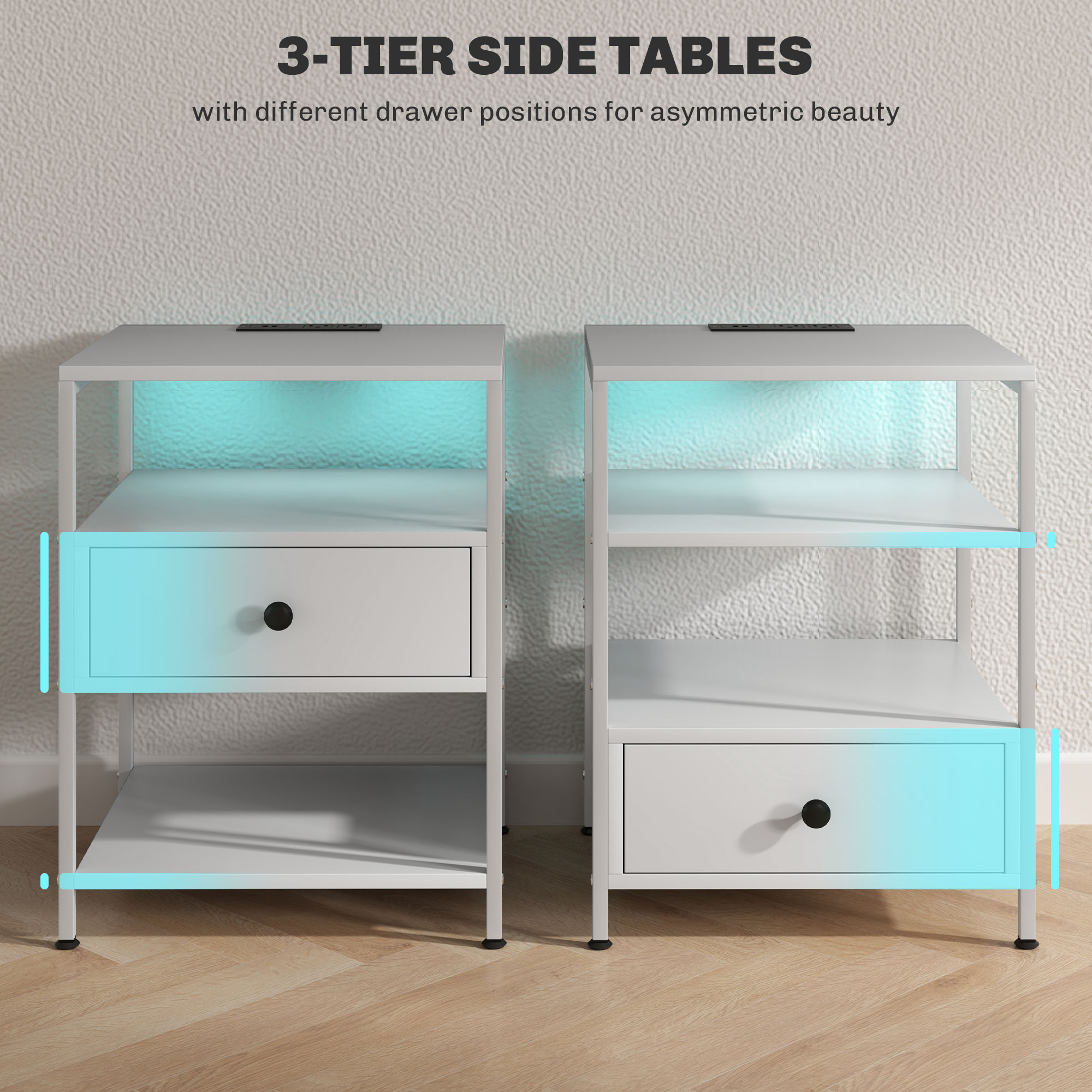 Dual side tables featuring built-in USB charging ports and ambient LED lights, perfect for modern living spaces.