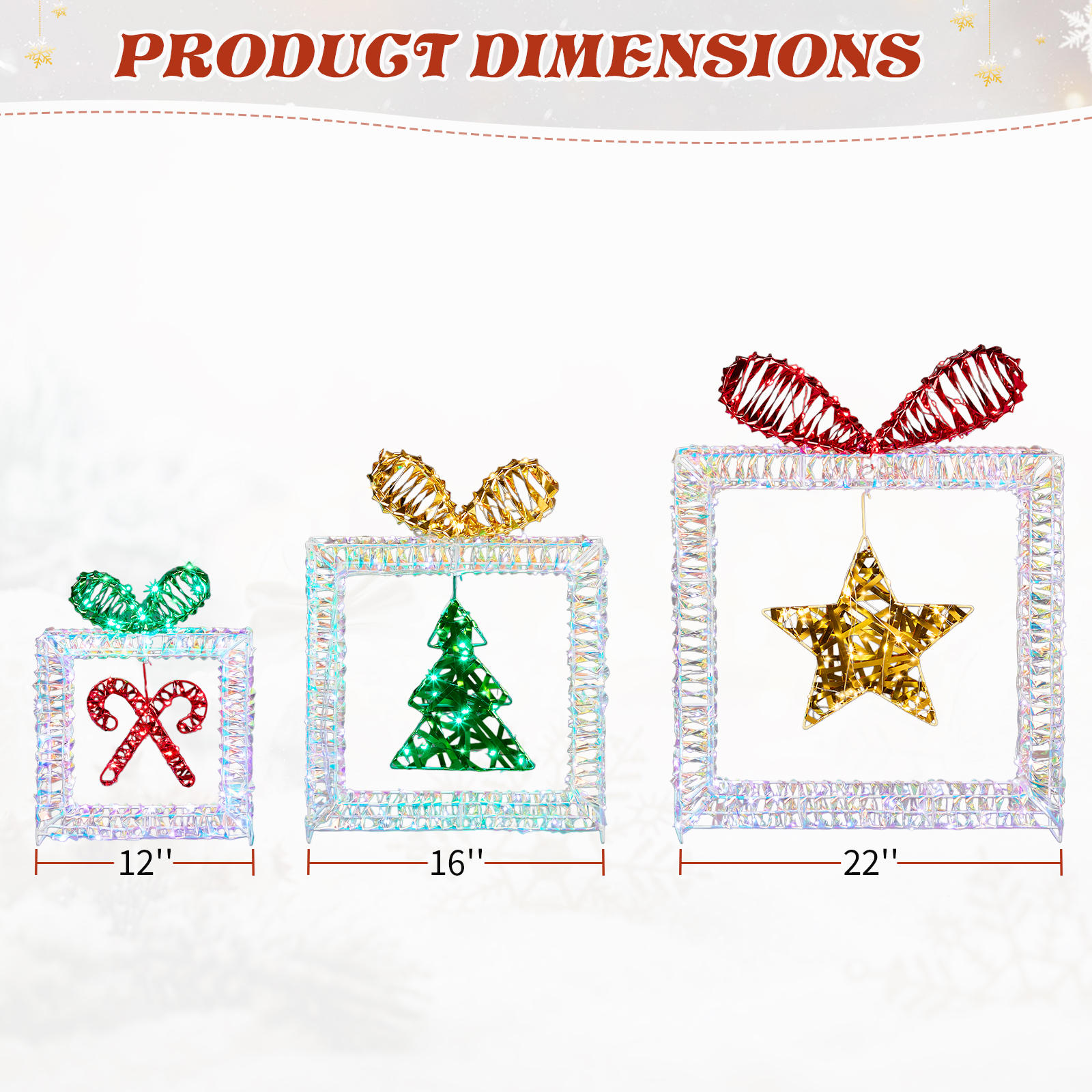 Be the first to review “Set Of 3 Lighted Iridescent Cut-out Gift Box Christmas Decorations, Pre-lit Holiday Decor With 357 White LED Lights For Xmas Outdoor Indoor Decor Lighted Holiday Displays” Cancel reply