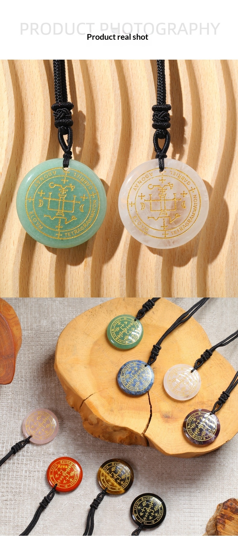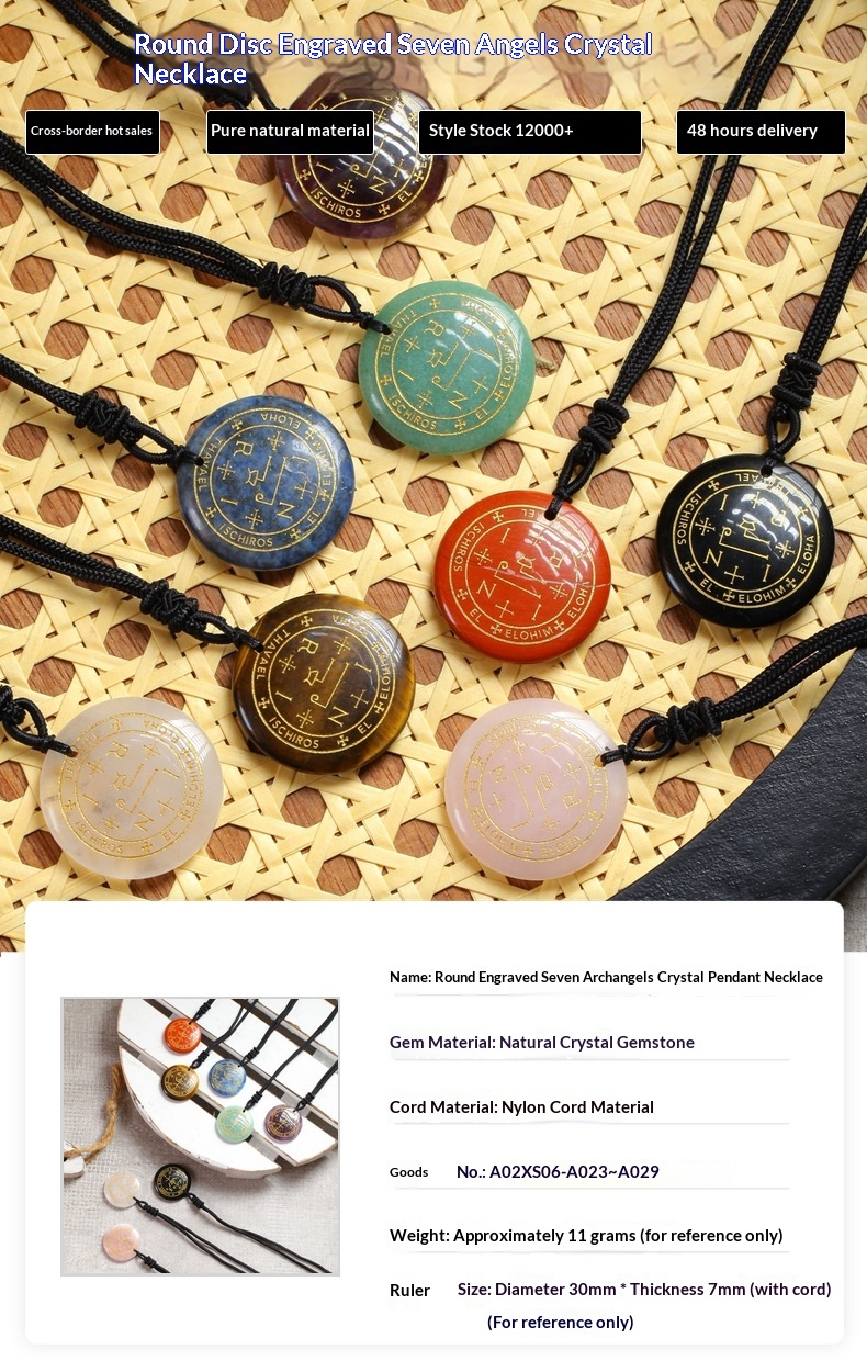 Elegant natural crystal pendant necklace featuring seven archangels for spiritual and aesthetic appeal.
