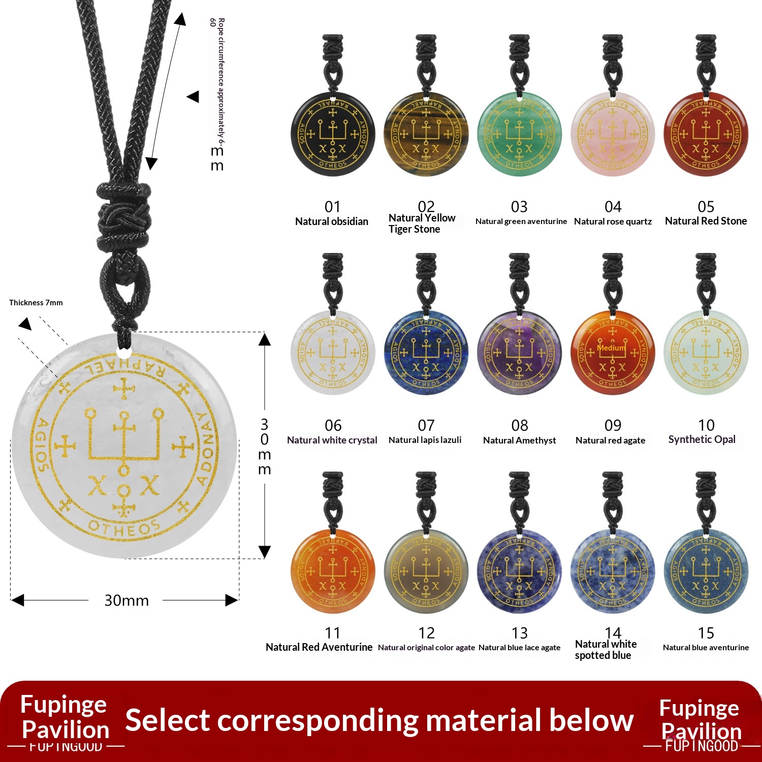 Purity: 01 – Natural Obsidian, 02 – Natural Tiger’s Eye, 03 – Natural Green Aventurine, 04 – Natural Rose Quartz, 05 – Natural Red Jasper, 06 – Natural Clear Quartz, 07 – Natural Lapis Lazuli, 08 – Natural Amethyst, 09 – Natural Red Agate, 10 – Synthetic Opal, 11 – Natural Red Aventurine, 12 – Natural Undyed Agate, 13 – Natural Blue Lace Agate, 14 – Natural White Spotted Blue, 15 – Natural Blue Aventurine