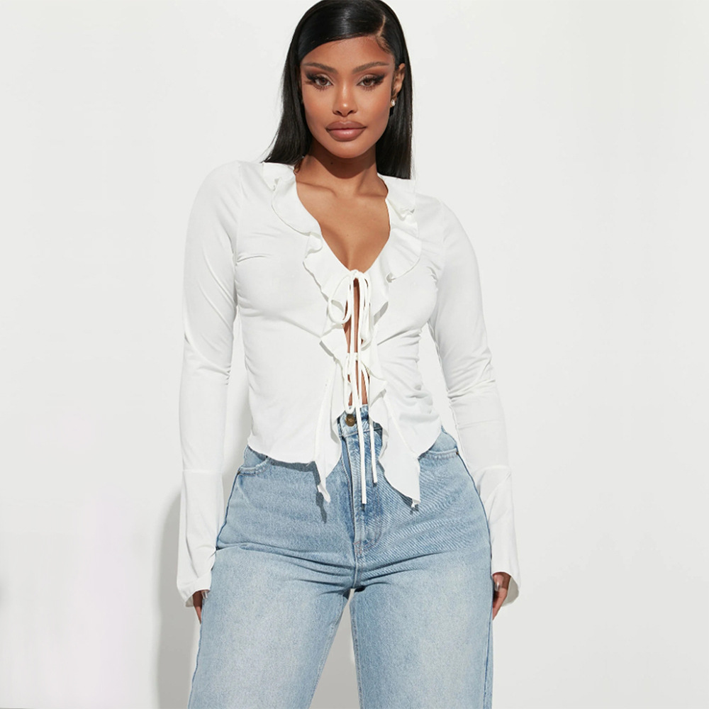 This women’s t-shirt showcases a delicate crochet pattern combined with a sexy strappy design, enhancing both style and ventilation. Crafted with lightweight materials, it offers comfort and breathability, making it suitable for casual wear during warmer seasons. The short sleeve cut provides a modern, flattering fit that complements various outfits.