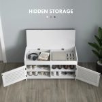 Be the first to review “Shoe Storage Bench, Modern Entryway Bench With Cushion, Hidden Compartments, Adjustable Shelves, Shutter Doors, White”