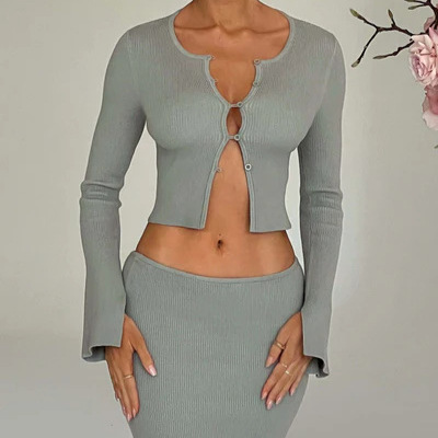 Be the first to review “Short Long Sleeve Cardigan Top Split Skirt Suit Women” Cancel reply