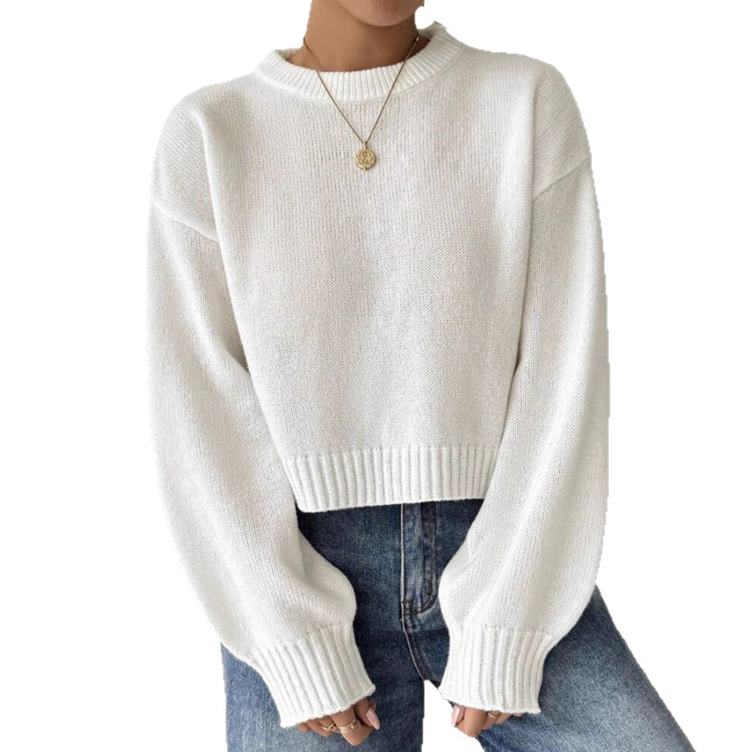 Classic short round neck solid color sweater designed for effortless, all-matching wear with everyday comfort and style.