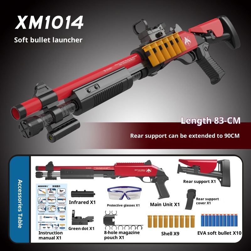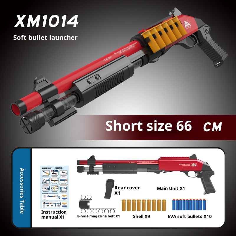 This shotgun toy features a realistic design equipped with soft bullet shells that provide a safe and engaging play experience for children. Crafted with child-friendly materials, the soft bullets ensure minimal risk during active play. The toy simulates the action of a shotgun, enhancing imaginative role play while promoting hand-eye coordination and motor skills development. An excellent gift choice for children who enjoy action-packed activities in a safe environment.