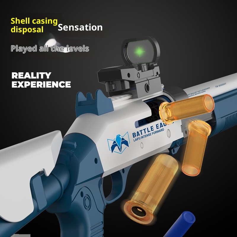 Realistic shotgun toy with soft bullet shells designed for safe play and simulation. Ideal children’s gift for interactive fun.