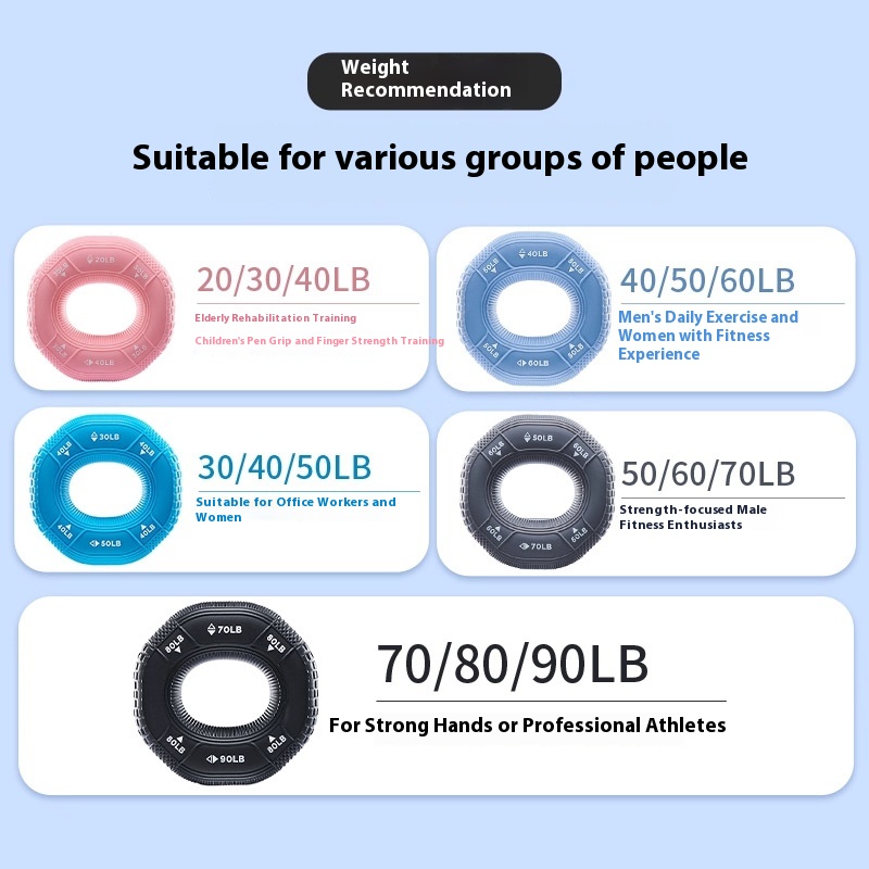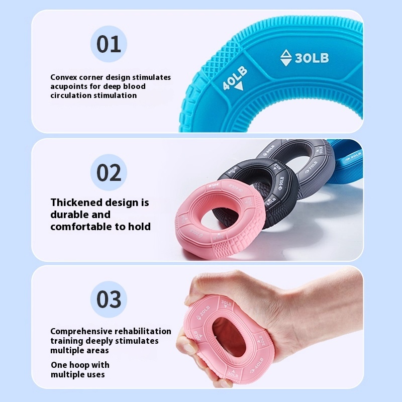 This silicone grip ring is designed for decompression and enhancing hand and arm muscle strength. Constructed from high-quality silicone, it provides effective resistance to improve five-finger grip strength. Suitable for rehabilitation, muscle training, and strengthening hand capabilities, this exercise equipment aids in improving grip and arm endurance through consistent use.