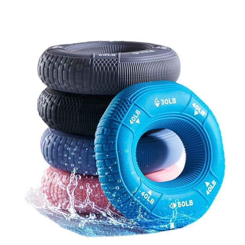 Durable silicone grip ring to strengthen fingers and arms, ideal for rehabilitation and muscle building exercises.