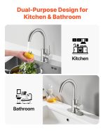 Features & Details High Reach Design: Designed for convenience, this rv kitchen faucet replacement offers a 360° rotating spout, providing full coverage for double sinks. The high-arc spout makes it easy to clean large pots without effort, reducing strain while ensuring a smooth water flow Anti-Splash Design: Equipped with a high-density aerator, this single handle sink faucet delivers a rich, bubble-filled water flow that reduces splashing during dishwashing. The splash-resistant design minimizes water on your sleeves and countertop, saving time on cleaning and keeping your workspace tidy Premium Stainless Steel: VEVOR sink faucet kitchen features a 304 stainless steel braided inlet hose, reducing the risk of leaks and bursts. The body and key components are also made from 304 stainless steel, offering excellent resistance to corrosion and acids, making it suitable for various water environments Push-Button Drain: Equipped with a push-button drain, our single handle kitchen faucet makes it easy to switch between filling and draining your sink. The integrated mesh filter traps debris, enhancing convenience and ensuring efficient drainage, making it a great addition to your kitchen setup Easy Installation: This brushed nickel kitchen faucet comes with a complete set of accessories, including the faucet, hot and cold water hoses, drain, base plate, and hex wrench, making installation quick and easy. No additional parts are needed, allowing even beginners to install it effortlessly
