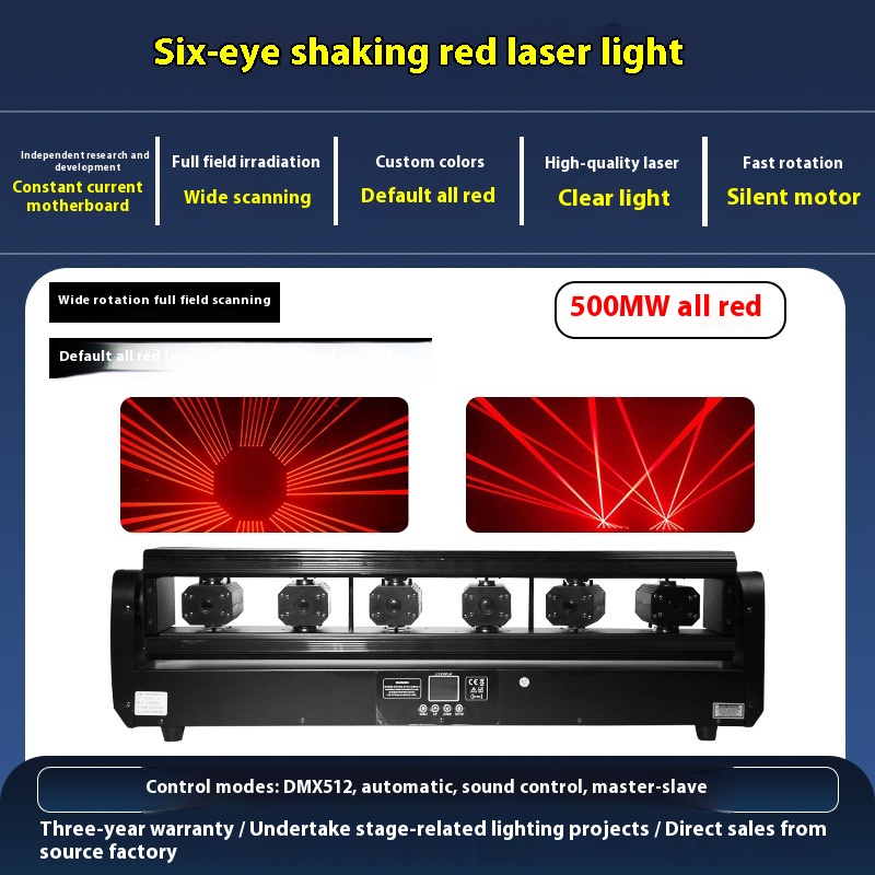 High-performance six-eye double swing laser lamp delivering vibrant full-color effects for enhanced lighting displays and events.