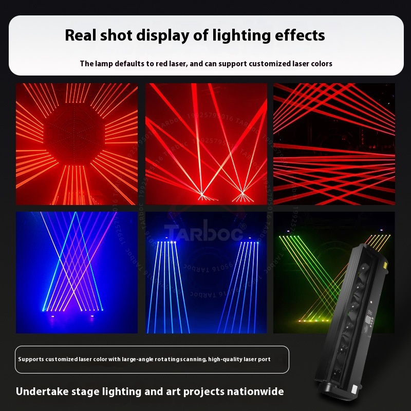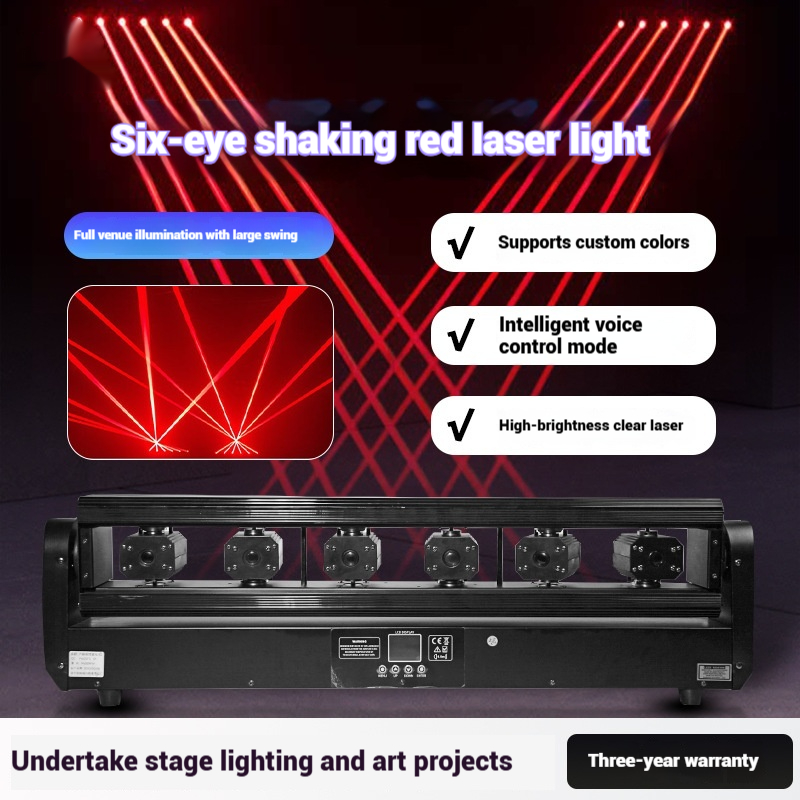The Six-Eye Double Swing Full-Color Laser Lamp offers dynamic and vibrant lighting effects with six independent laser emitters. Equipped with a double swing mechanism, it produces fluid motion to create immersive visual displays suitable for concerts, stage performances, and event installations. The lamp supports full-color projection, enabling rich, vivid beams for enhanced ambiance. Designed for professional use, it combines durable construction with advanced laser technology to ensure reliable operation and captivating light shows.