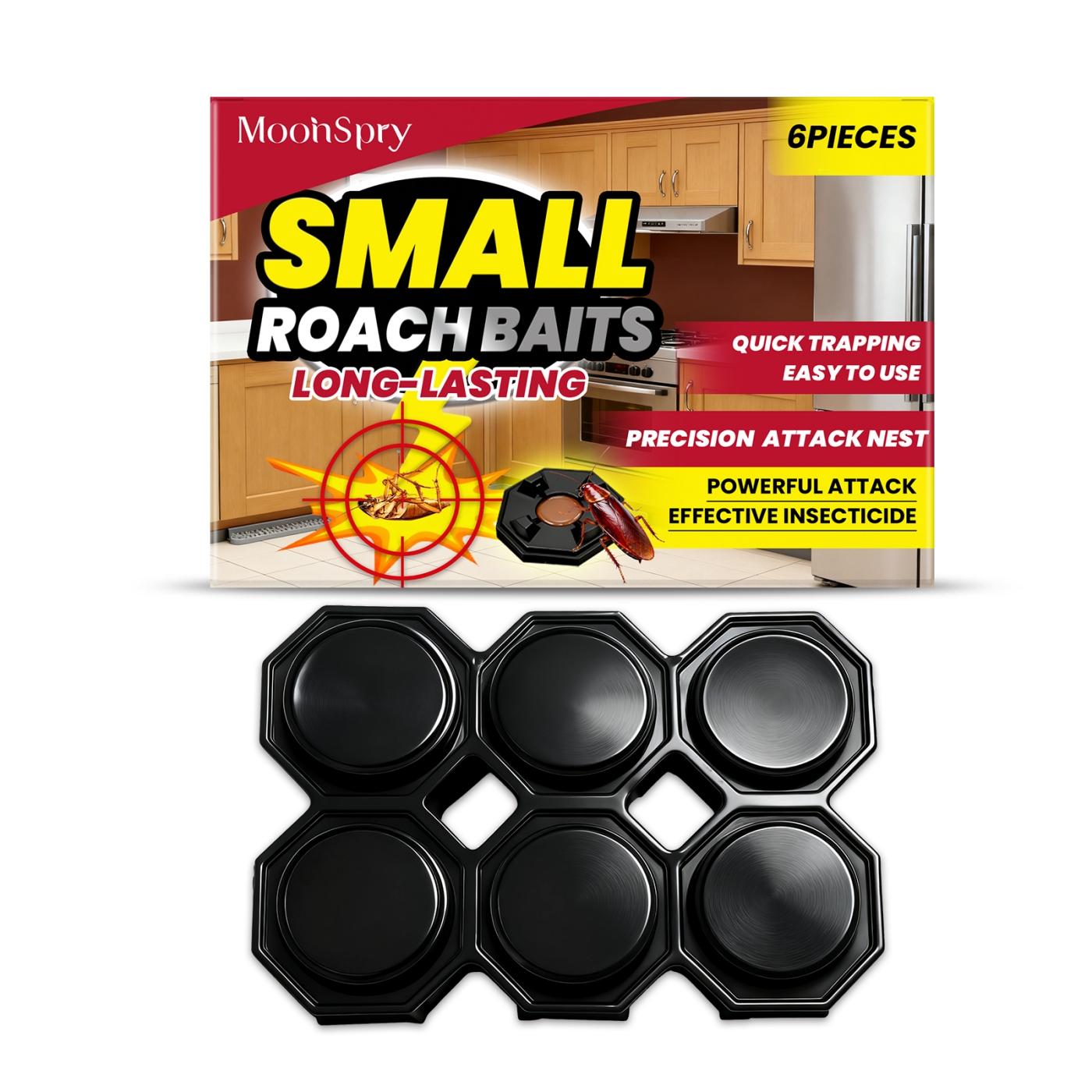 Compact roach baits designed to eliminate cockroaches efficiently and discreetly in homes and commercial spaces.