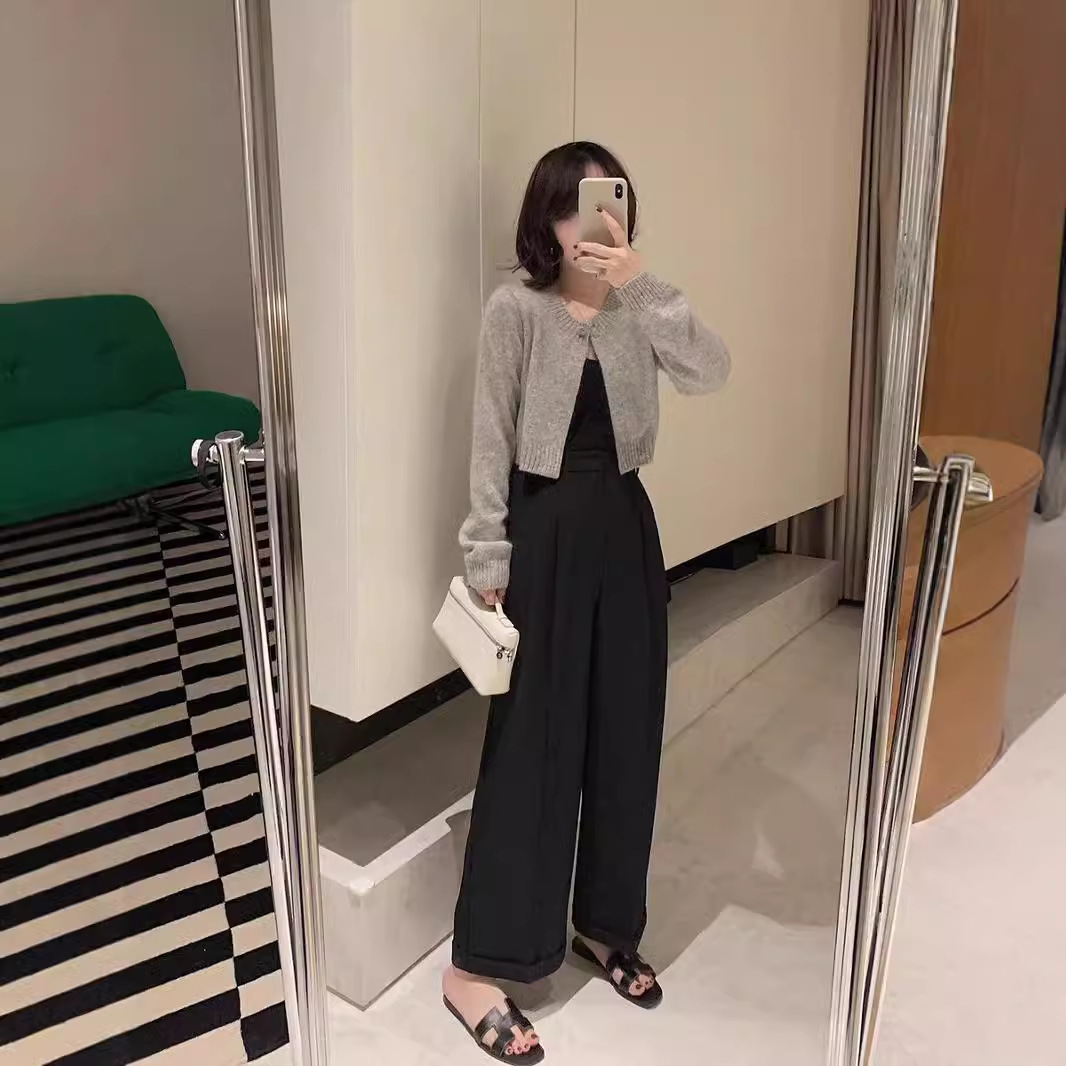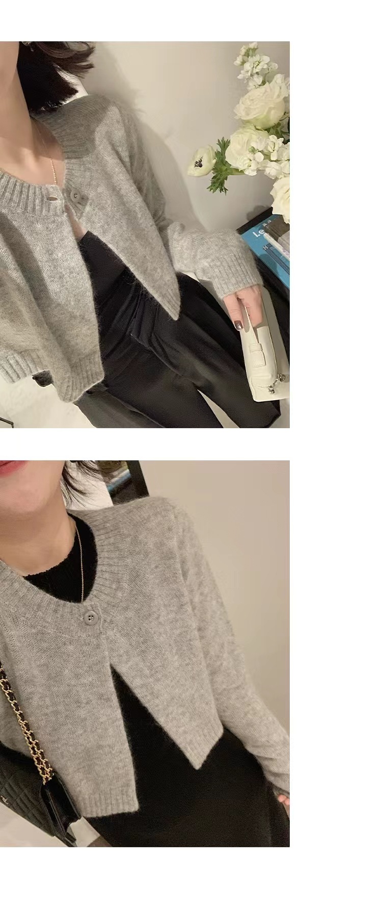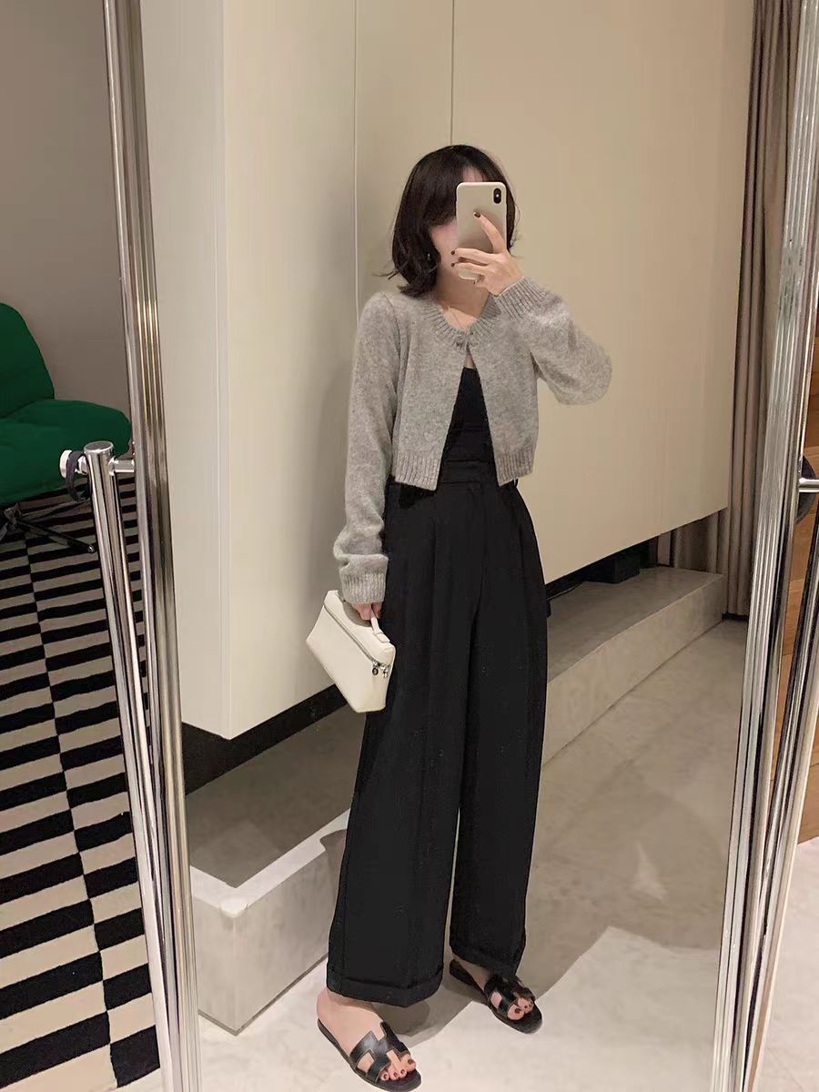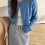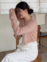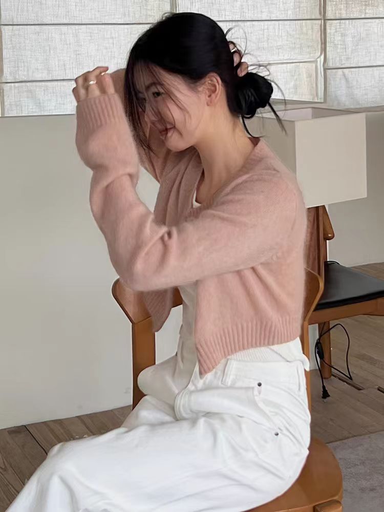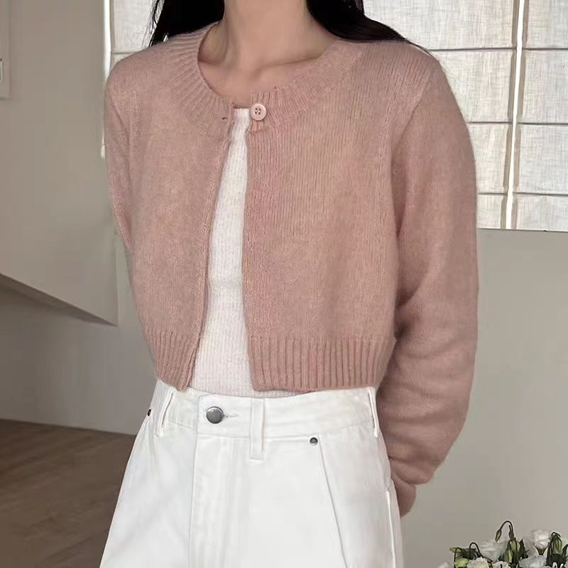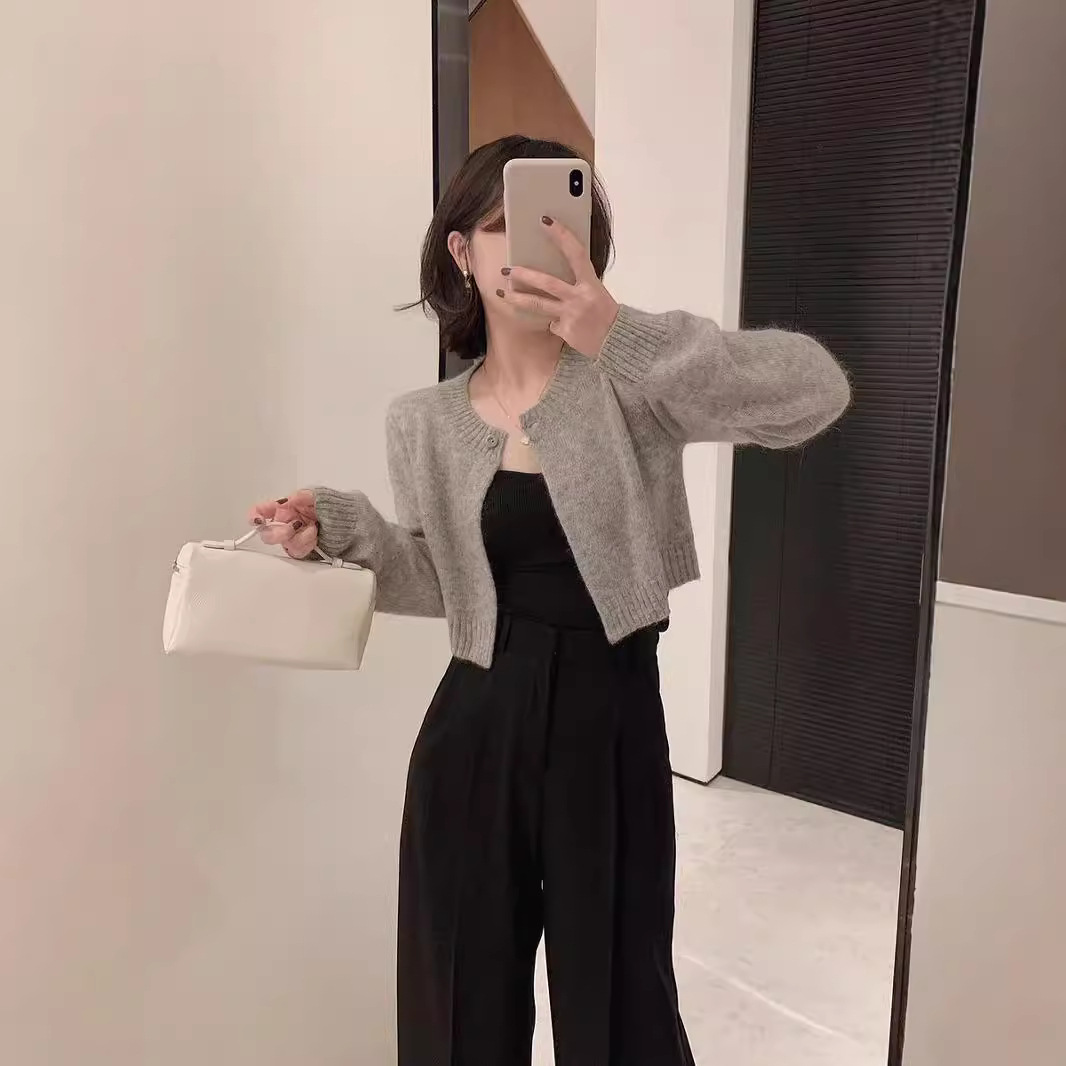 Elegant short wool knit cardigan featuring a unique temperamental style, perfect for refined comfort and fashionable layering.