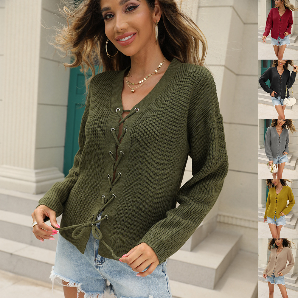 Be the first to review “Solid Color And V-neck Hollow Out Tied Knitted Sweater” Cancel reply