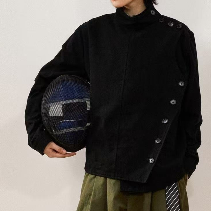 Stylish solid color jacket with minimalist design, perfect for casual wear and versatile styling.