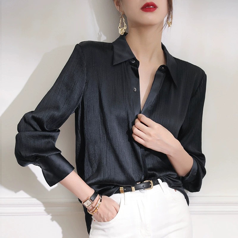 Be the first to review “Solid Color Temperament Spring And Autumn Shirt Women Loose Copper Ammonia Silk Top” Cancel reply